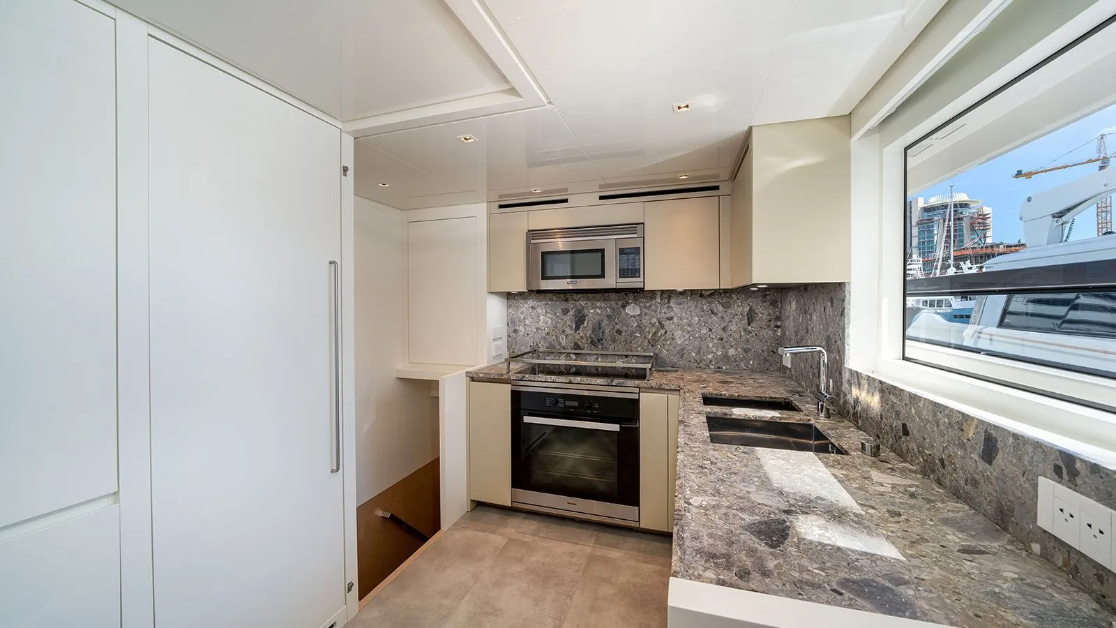 The bar also houses the on deck grill and being so close to the table means the chef can serve freshly grilled meat and seafood direct to the table. There is a pop-up TV, perfect for al fresco movies after dinner or to keep the kids entertained and the space is covered by a hard roof which benefits from a louvred section.