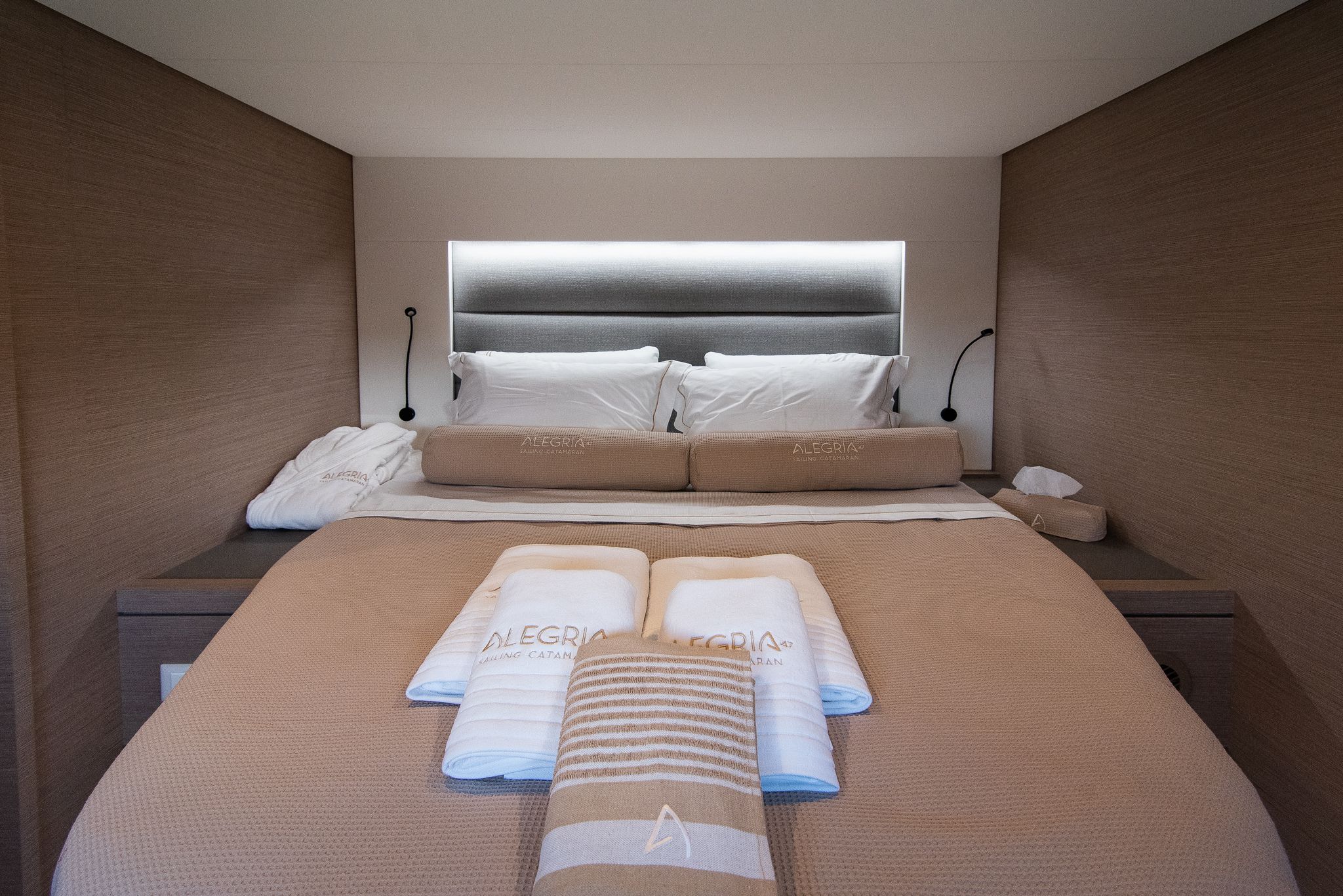 Sailing yacht ALEGRIA is a 13.94m (47') Fountaine Pajot Saona 47 catamaran with loads of space inside and out to deliver premium charters for up to ten guests accommodated in five ensuite cabins.