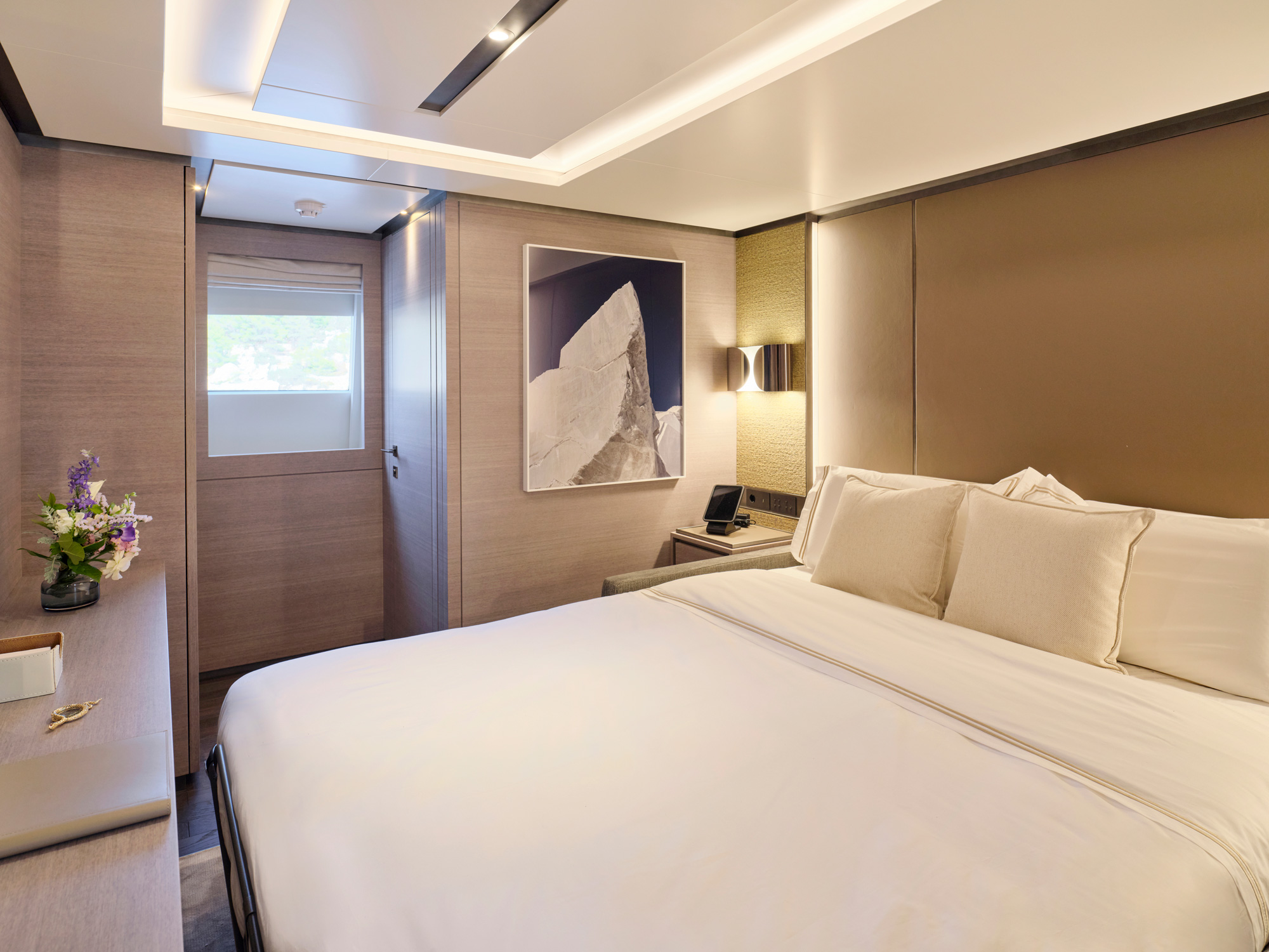 She can accommodate up to 11 guests in six suites and a crew of 7.