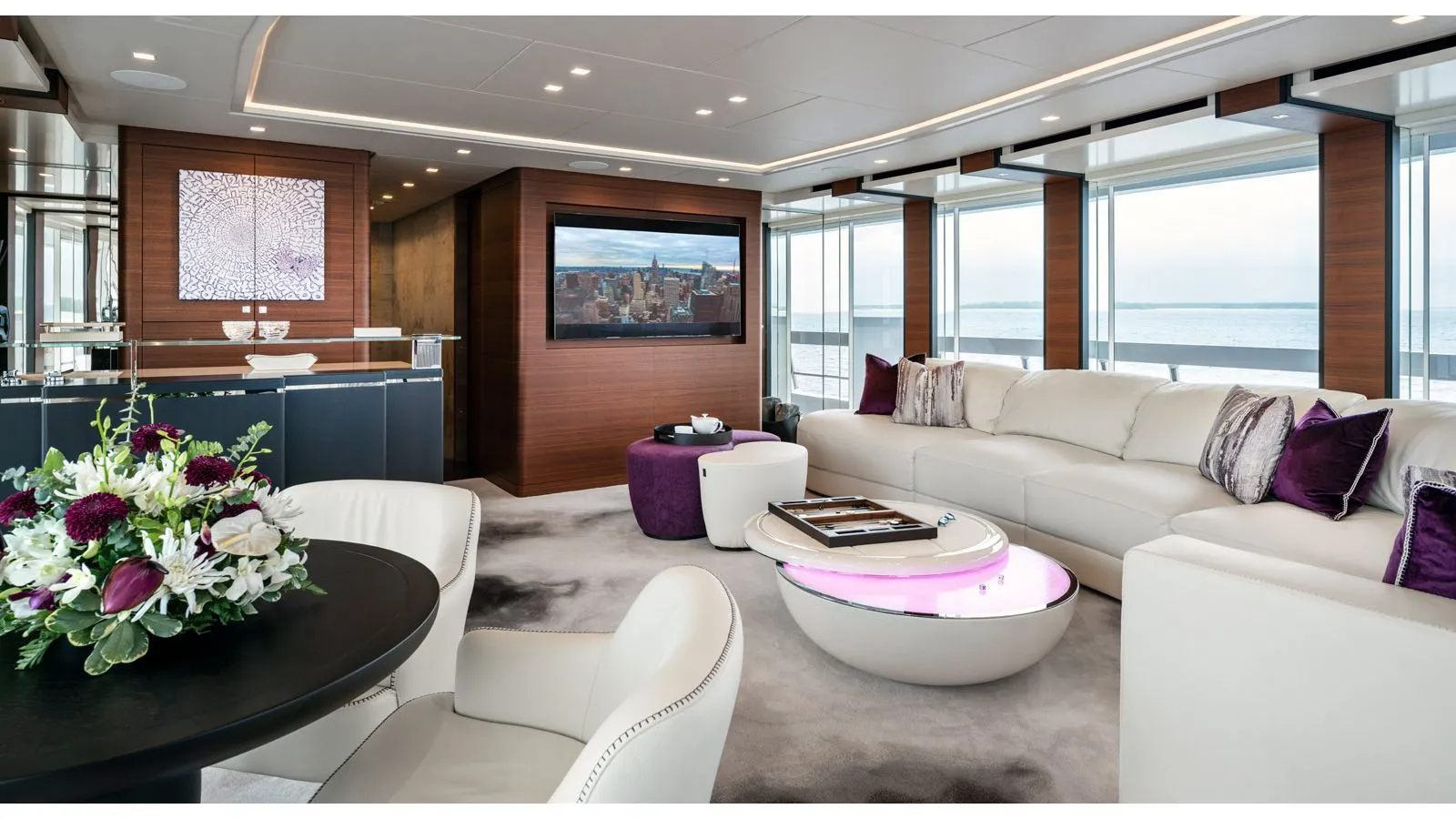 The sociable sundeck benefits from a six-person Jacuzzi and an abundance of loungers for the sun worshippers in the group. This deck level is also home to casual seating and a full-service bar area – a perfect spot-on board for a happy hour and shaded for comfort.