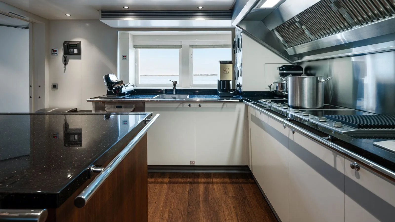 The remaining five cabins – a full beam VIP, two doubles and two twins – can be found on the lower deck. Tenders & Toys
