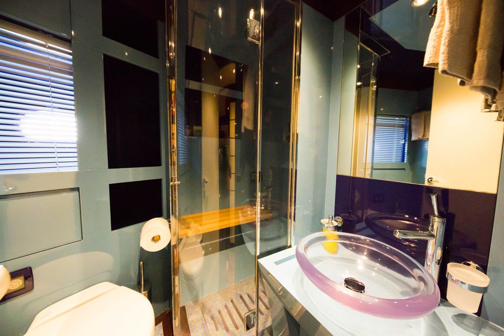 The guest accommodation is configured as a full beam master with generous ensuite located amidships, one full beam VIP in the bow and a twin cabin either side, each with ensuite bathroom facilities. As with the main deck spaces, the cabins are light and bright with contemporary neutral décor, comfortable furnishings and clever storage.