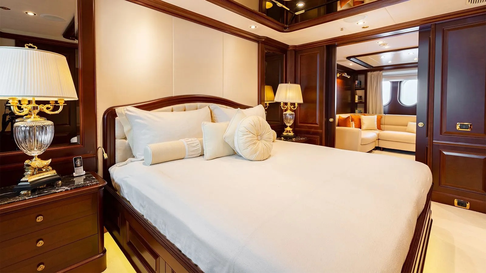 Her popular six-stateroom layout makes it easy to see why she is such an attractive vessel for large groups or families. The exclusive owner’s suite is forward on the main deck and provides a private haven for primary charter guests.