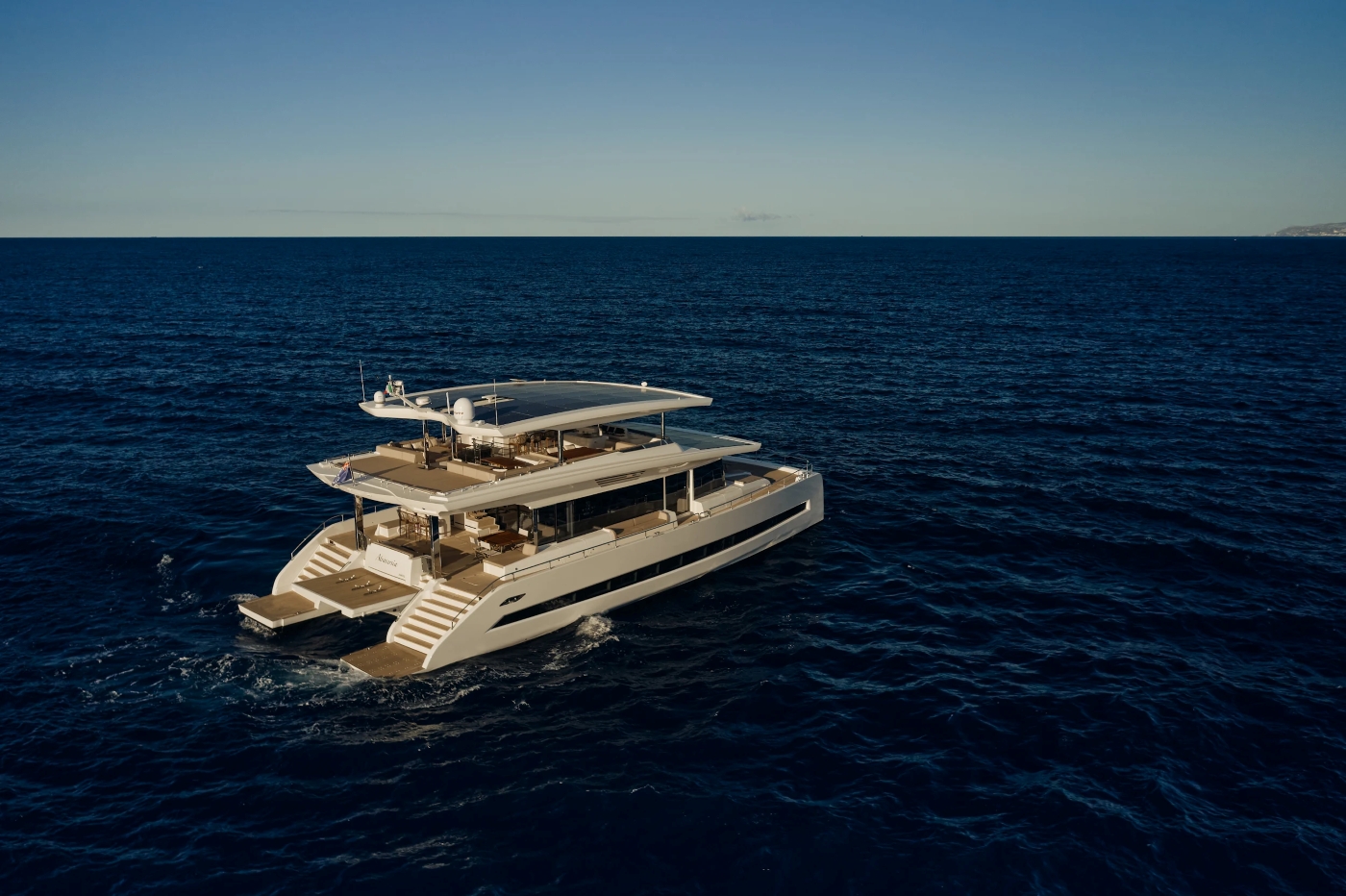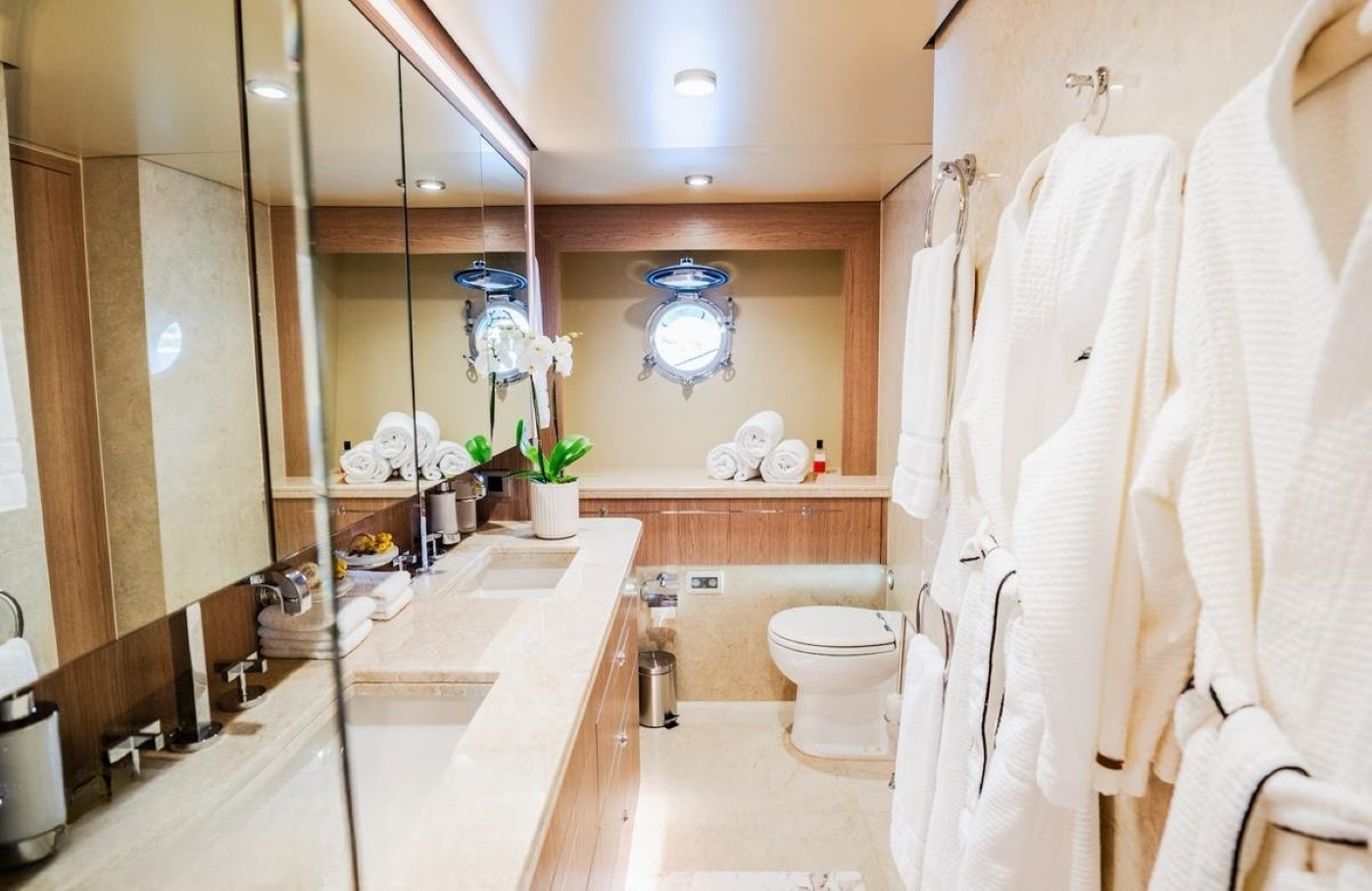 All the cabins benefit from the luxury and privacy of ensuite bathroom facilities. ~ 		450 electric waterjet tender in carbon fiber for 7 pax and 24 knots maximum speed