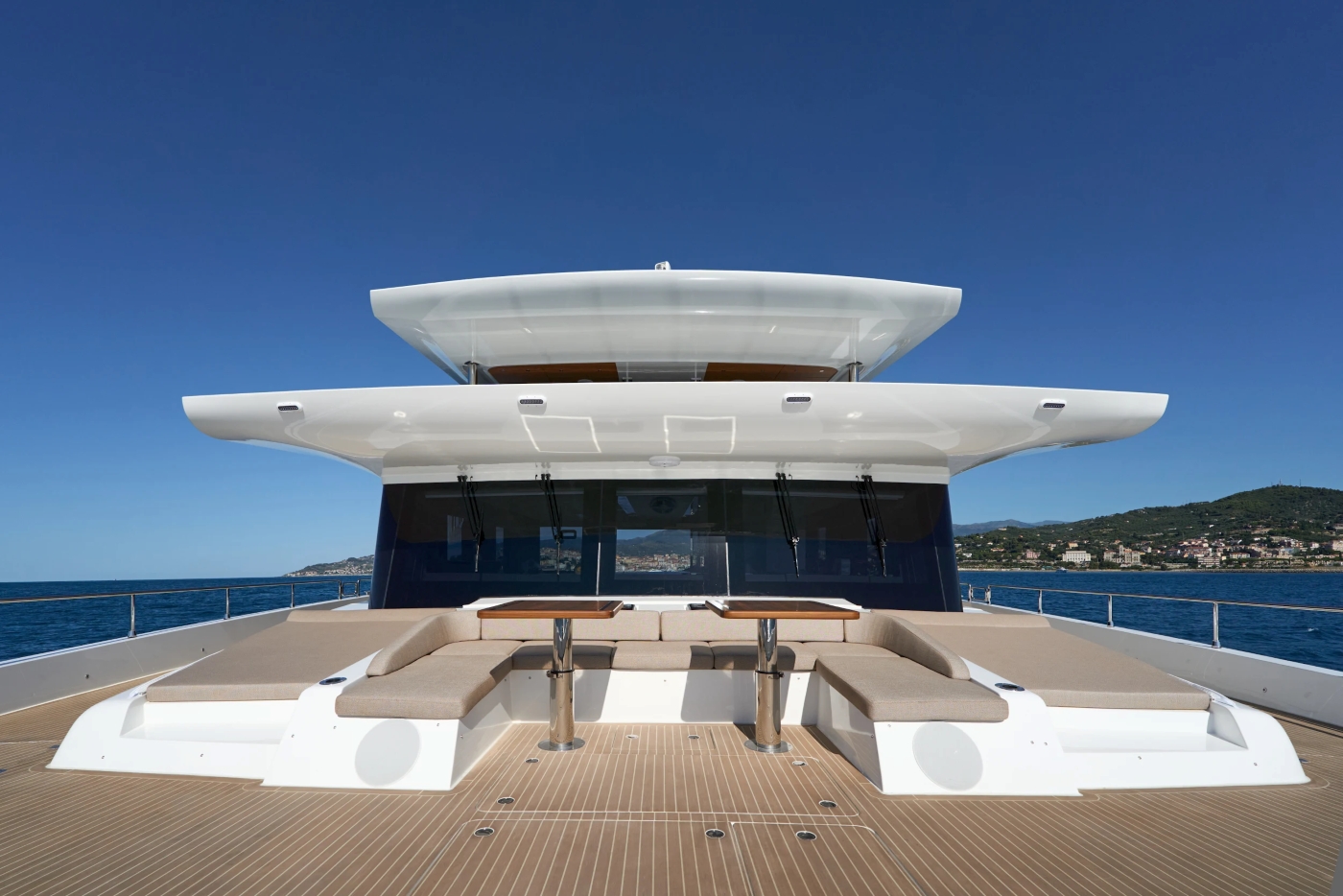 NOTABLE FEATURES OF ATRAVERSIA: ~Tri-deck catamaran ~Solar powered ~Silent cruising with low environmental impact ~Shallow draft ~Futuristic looks ~Stylish interior ~Air conditioning ~WiFi