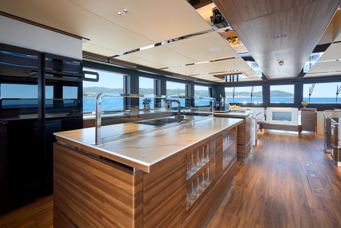 She combines luxury with her eco-credentials and silent cruising ability. Up to nine guests can be accommodated in four suites looked after by a crew of four.