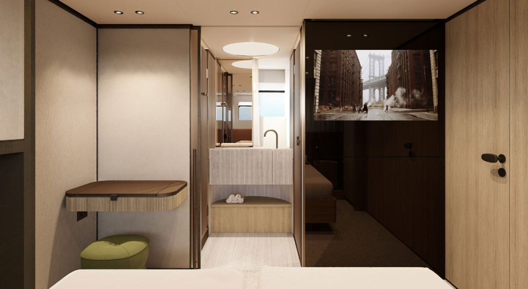 The additional staterooms are located on the lower deck and configured as two VIP and a convertible twin cabin with additional pullman.