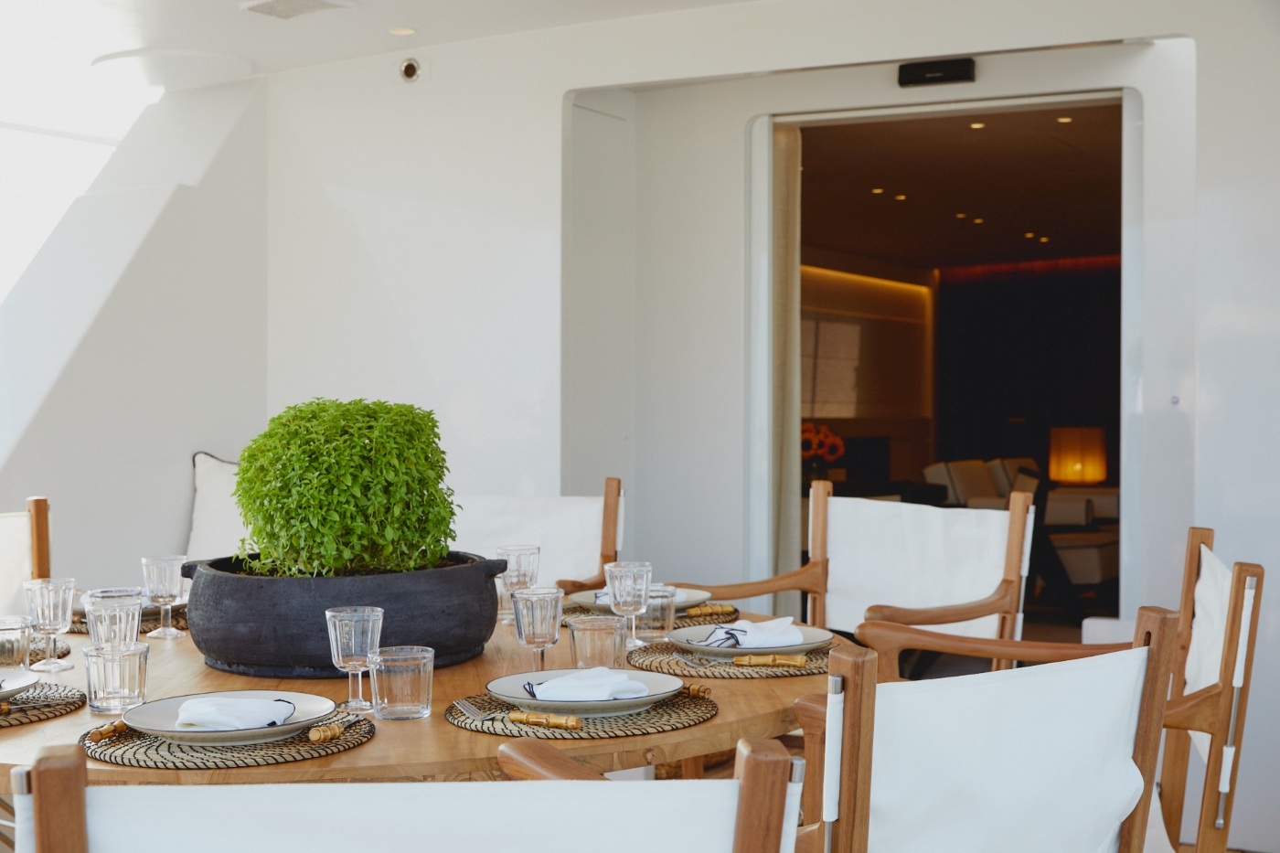 The main deck aft can accommodate everyone on board around the dining table making it the perfect spot to savour a leisurely al fresco dinner. There are steps down to the water’s edge swim platform from where the crew will launch the water toys.