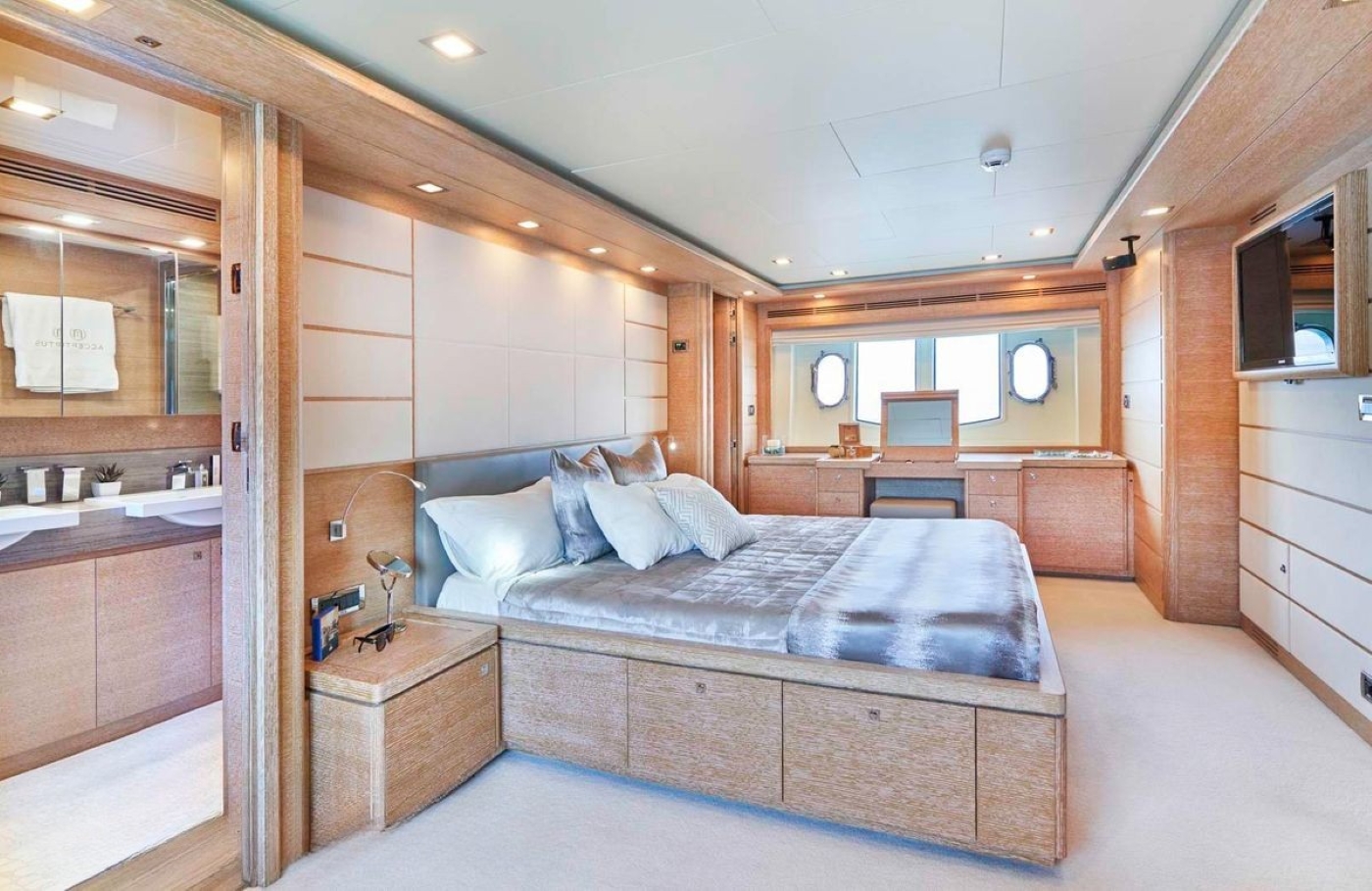 The light and bright cabins are configured as four doubles and one twin (+ 2 pullman bunks) allowing for a 10+2 guest arrangement. All the suites benefit from the luxury and privacy of ensuite bathroom facilities.