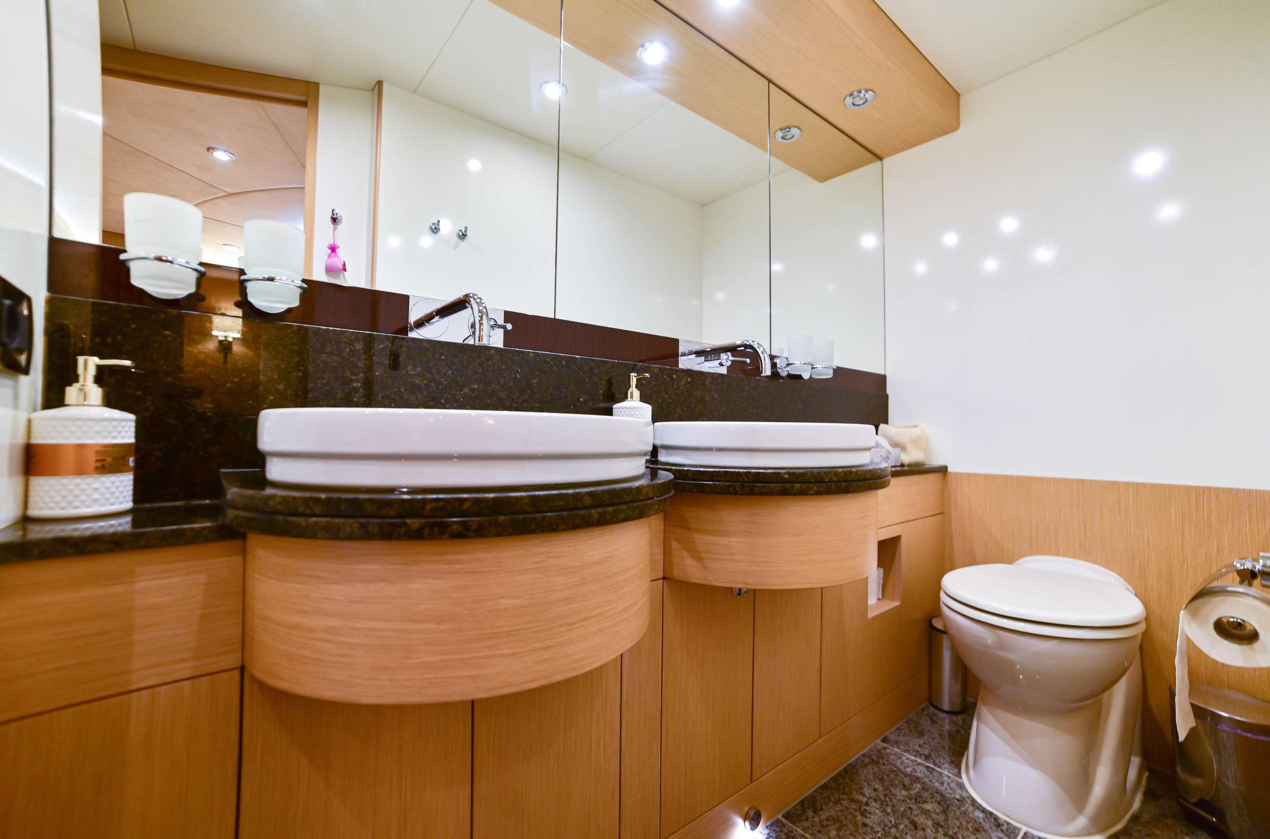 Four ensuite cabins provide luxury accommodation for up to eight guests in two double and two twins, making the layout perfect for families. The full beam master is generously proportioned and the adjacent ensuite has his and hers sinks and a full bathtub.