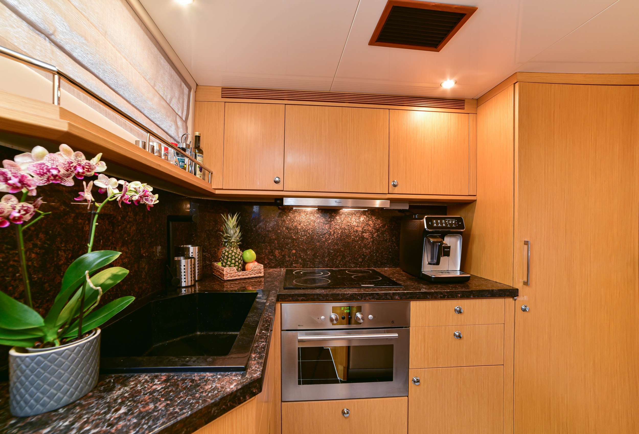 Four ensuite cabins provide luxury accommodation for up to eight guests in two double and two twins, making the layout perfect for families. The full beam master is generously proportioned and the adjacent ensuite has his and hers sinks and a full bathtub.
