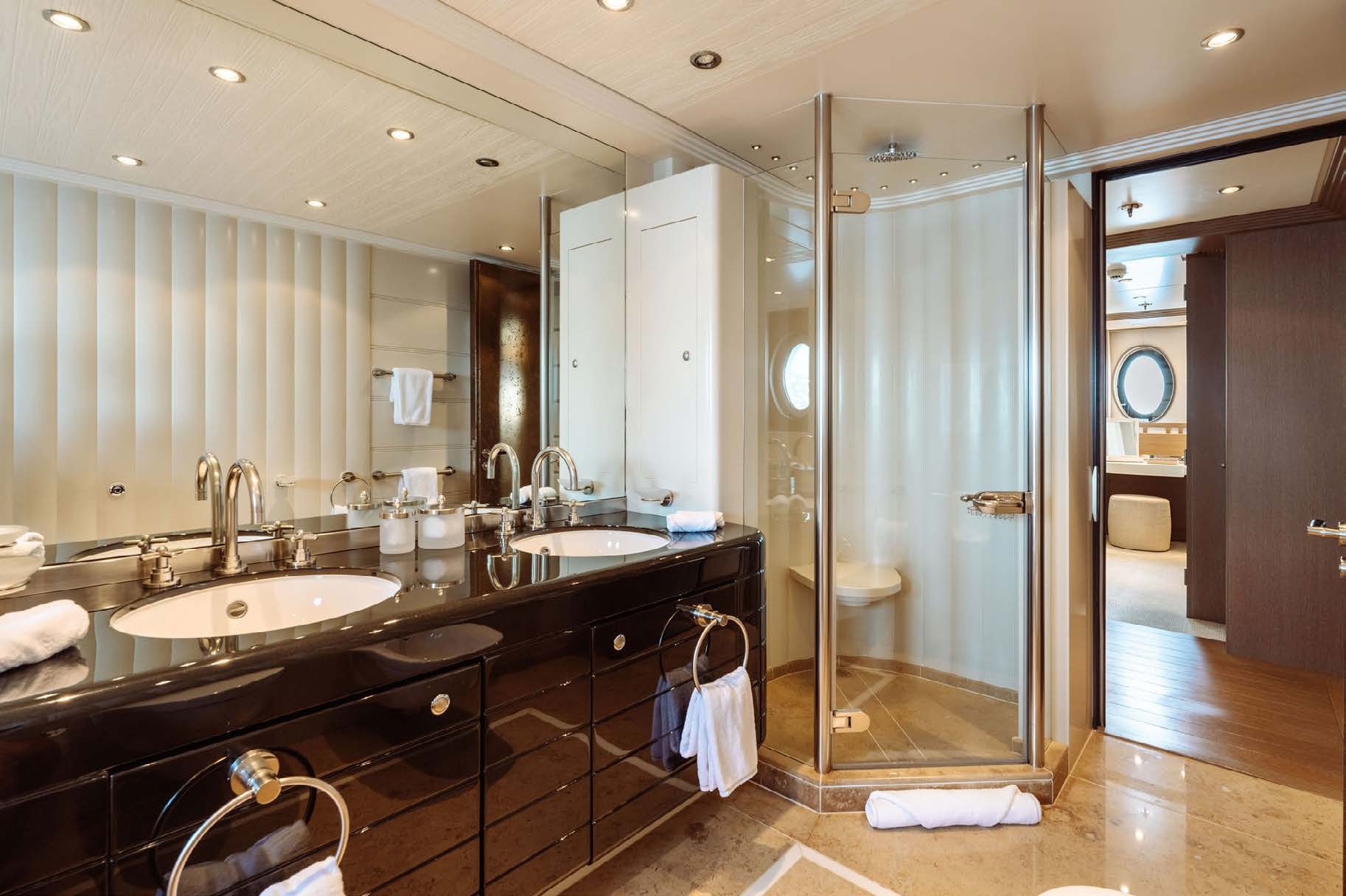 The additional accommodation is on the lower deck and configured as 1 VIP cabin with double bed and sofa area, walk-through ...