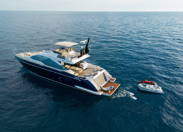Motor yacht MUDITA is a 21.68 m (71' 2") Azimut S7 sport yacht built in 2021 and featuring a striking blue hull which will cut through the water at top speeds of 35 knots. She can accommodate up to eight charter guests in four cabins who will be looked after by a 2-person crew.