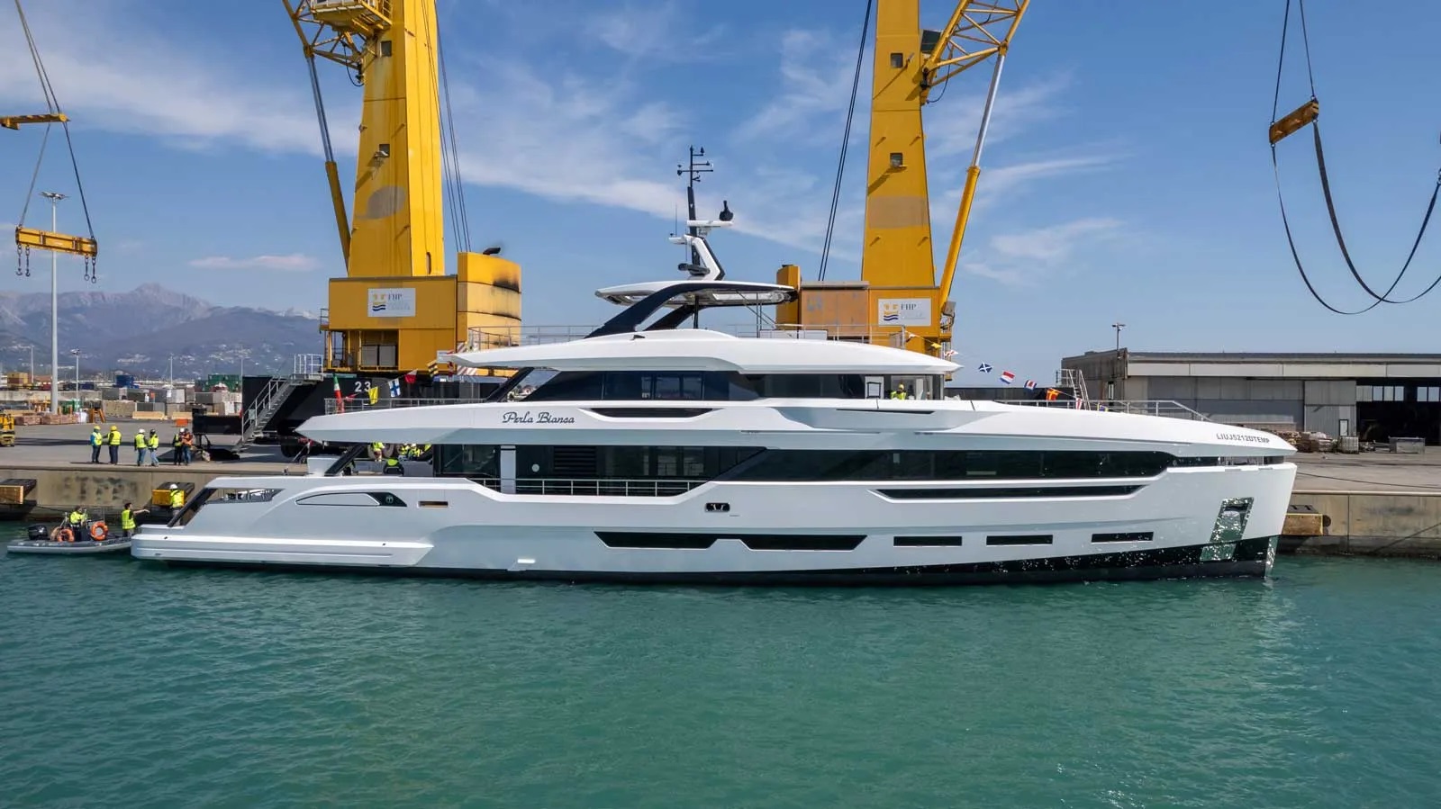 Luxury yacht PERLA BIANCA is a 40.9m (134'1") Baglietto DOM 133 built in 2023 in Italy. Her exterior and interior design are from Studio Vafiadis and she boasts a 410GT volume, a double level beach club and fabulous infinity pool with lifting floor which becomes part of the aft deck.