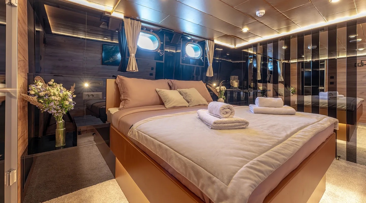As a new generation motor sailor, she offers next level luxury and accommodation for eight guests in four suites.