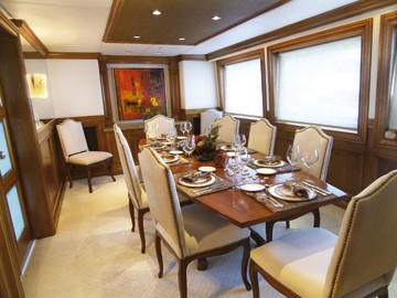 Her dining room offers formal dining for ten guests while her Skylounge is a very large area with a full entertainment system and a large day head forward.