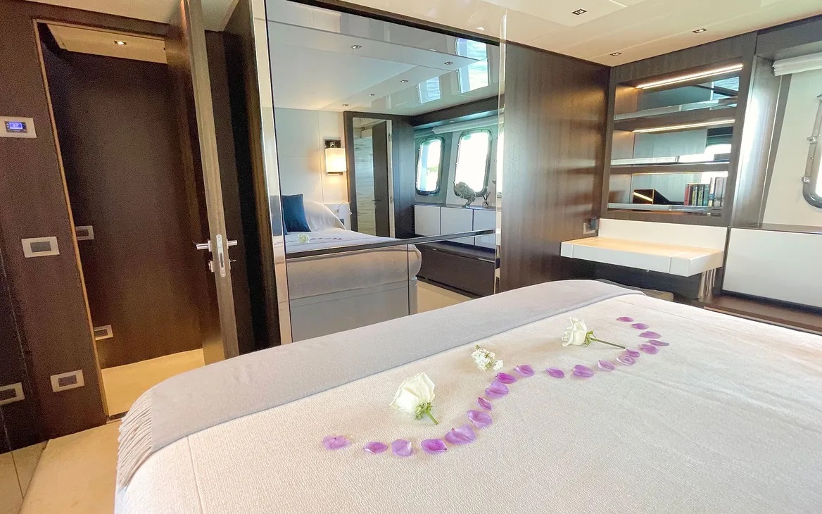 Eight guests can be accommodated in four luxury suites with a crew of four on board throughout.
