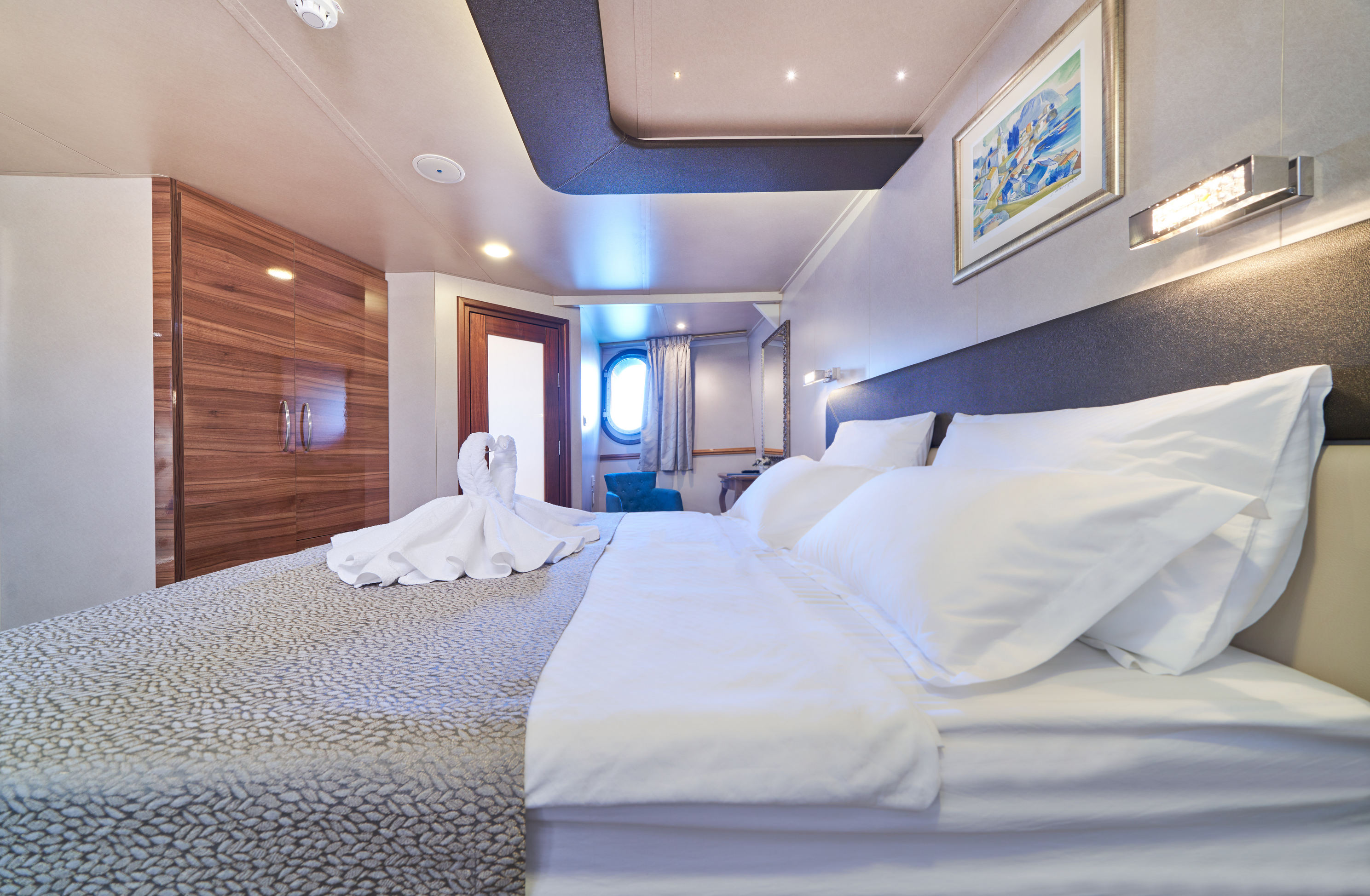 She offers outstanding leisure and entertainment facilities including plenty of al fresco space, jacuzzi, sauna and wellness zone plus accommodation for up to 36 guests in 18 top end cabins.