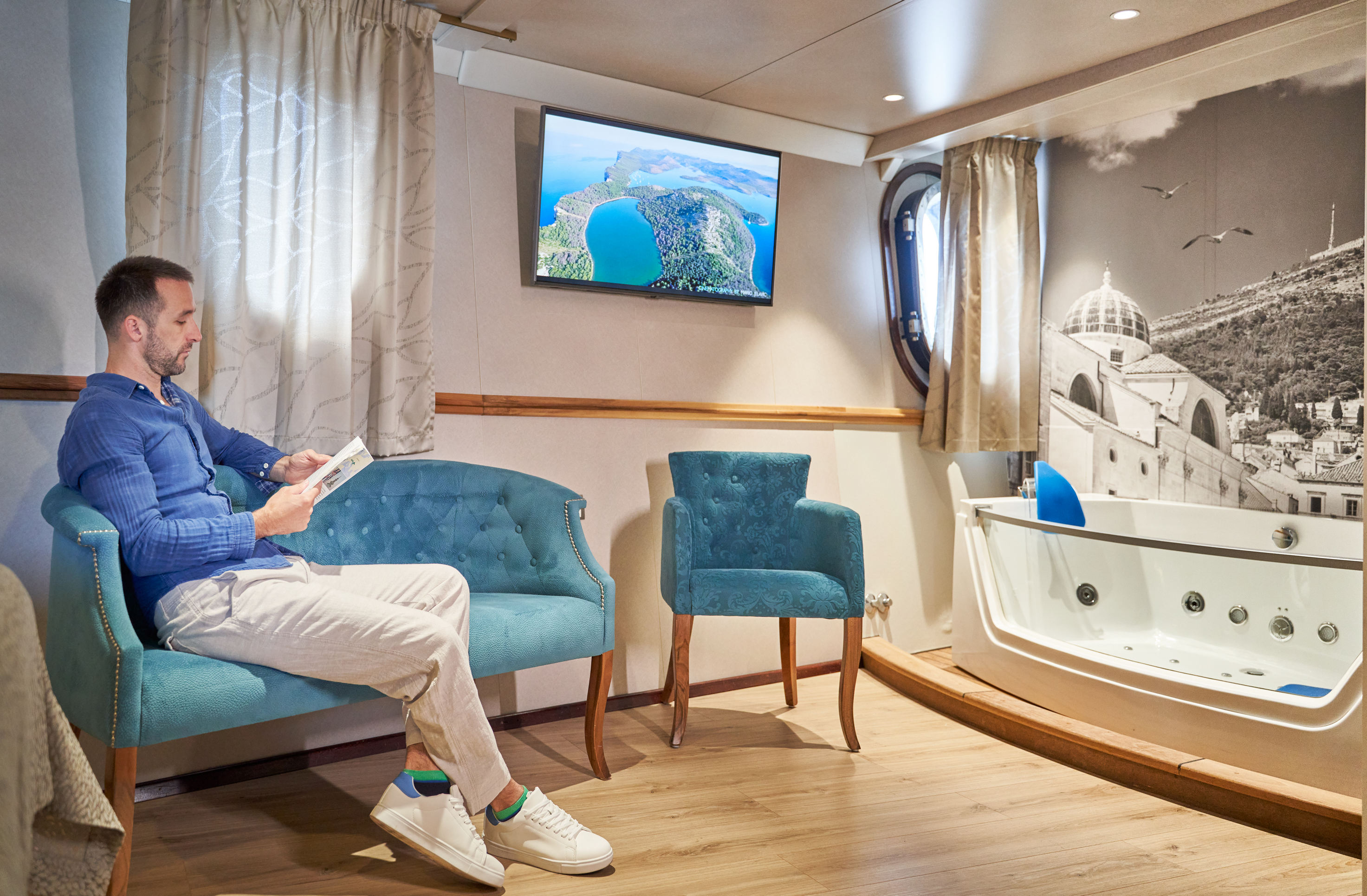 She offers outstanding leisure and entertainment facilities including plenty of al fresco space, jacuzzi, sauna and wellness zone plus accommodation for up to 36 guests in 18 top end cabins.