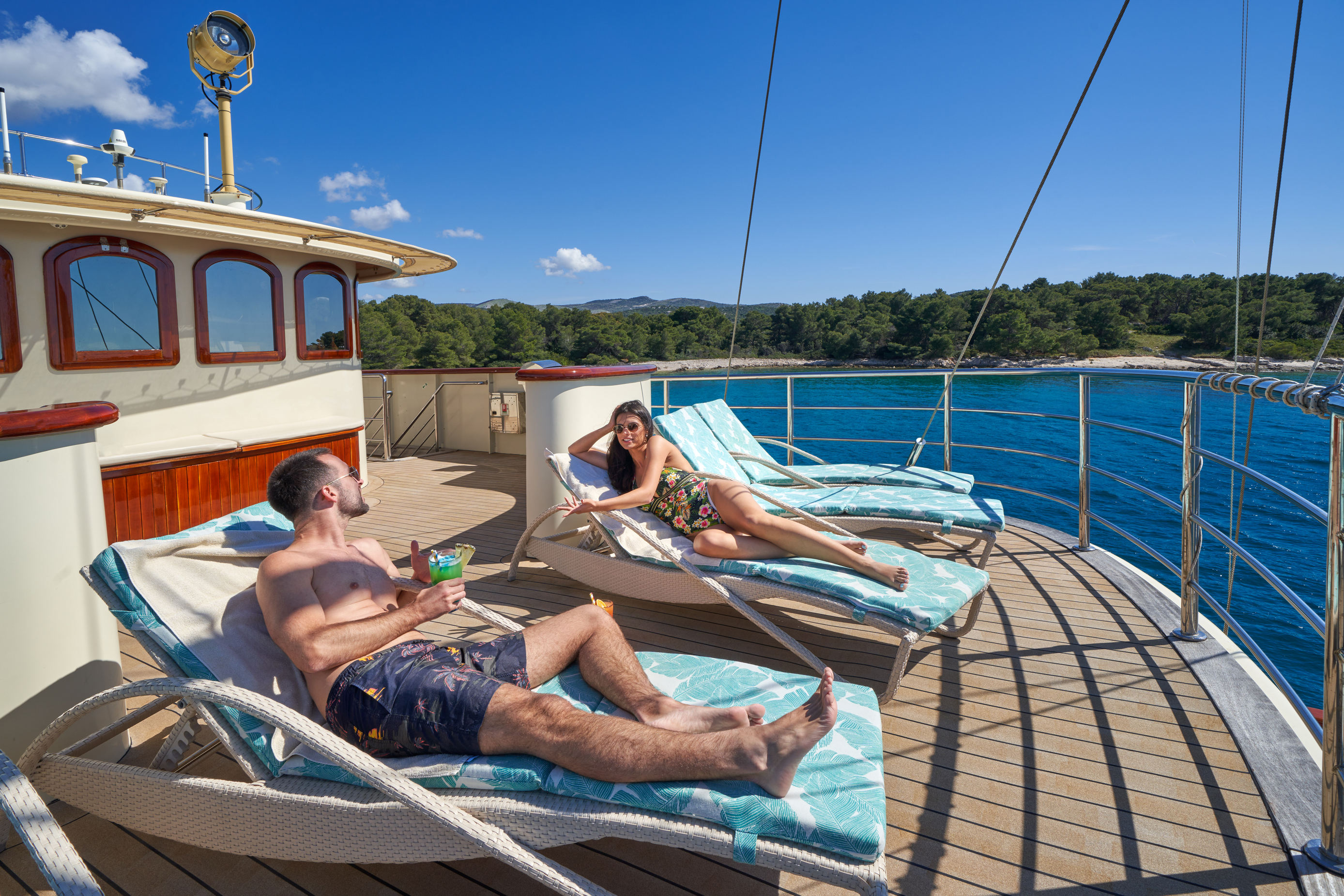 Forward on the upper deck is another expansive deck space which can be set up for drinks parties, sit down dinners or dancing.