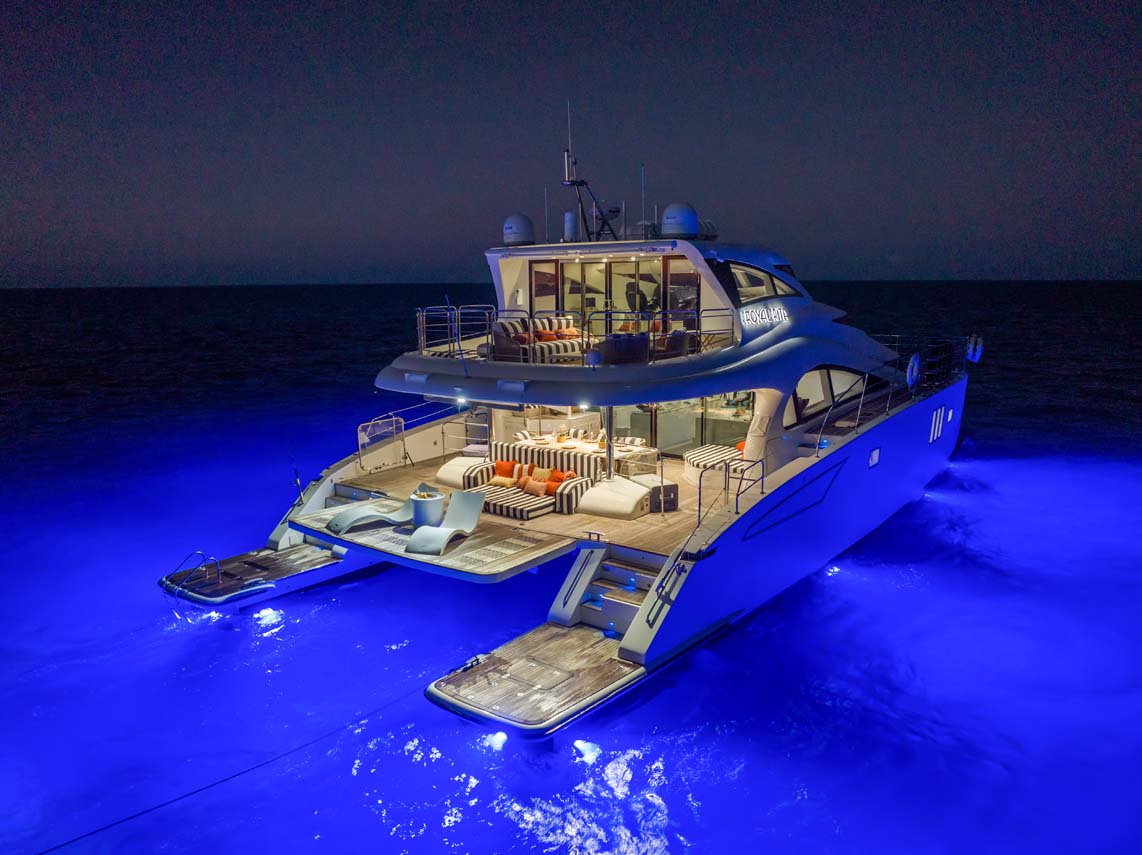 Luxury yacht ROYAL RITA (ex Valhalla) is a 23.99 m (78' 8") Sunreef 78 Power Catamaran built in 2016 and refitted in 2022. She can accommodate up to eight guests in four ensuite staterooms and is managed by a four-person crew.