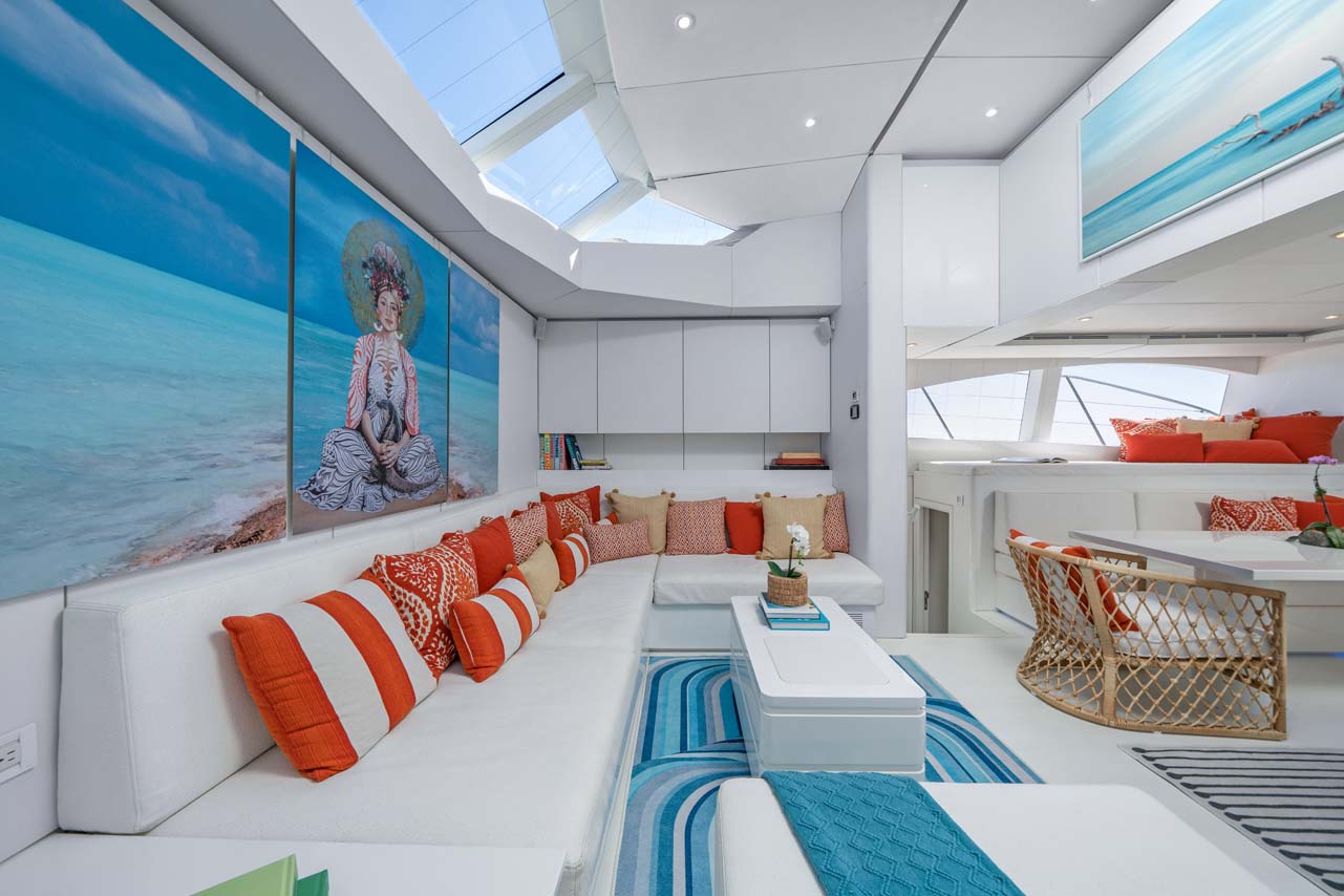 Step aboard and discover the spacious interior with soaring 11 ft ceilings in the main salon.