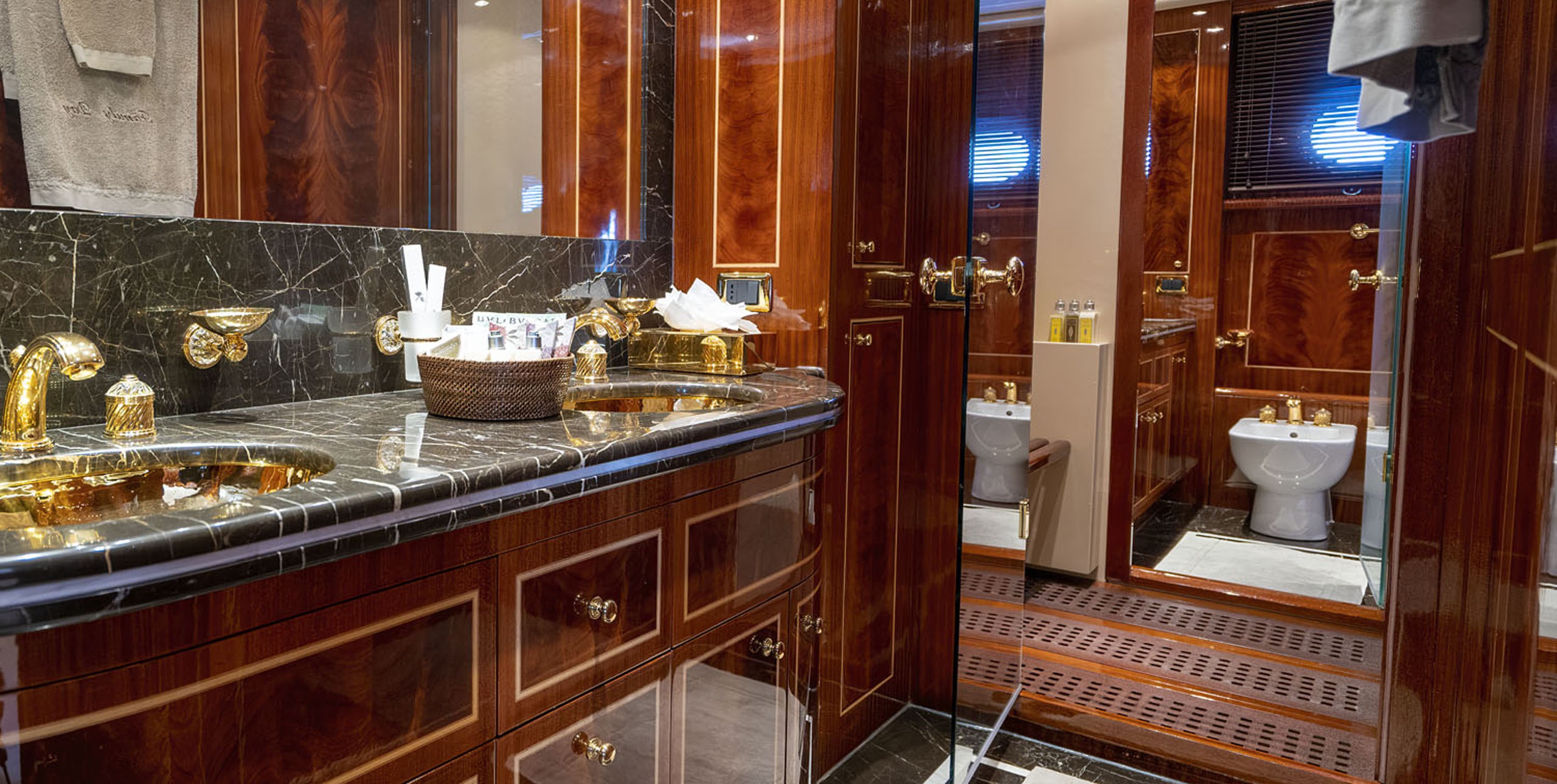 The classic white and gloss wood décor is echoed throughout the five ensuite staterooms which are configured as one master, one VIP, one double, one convertible and a twin with additional pullman bunk. All the suites benefit from the luxury and privacy of ensuite bathroom facilities.