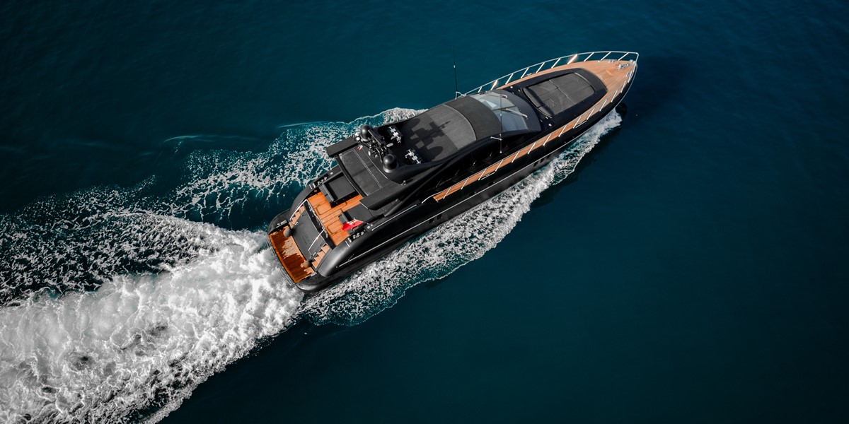 She is an open style yacht with large main deck aft leading down to a swim platform and a long bow covered in cushioned sun pads.
