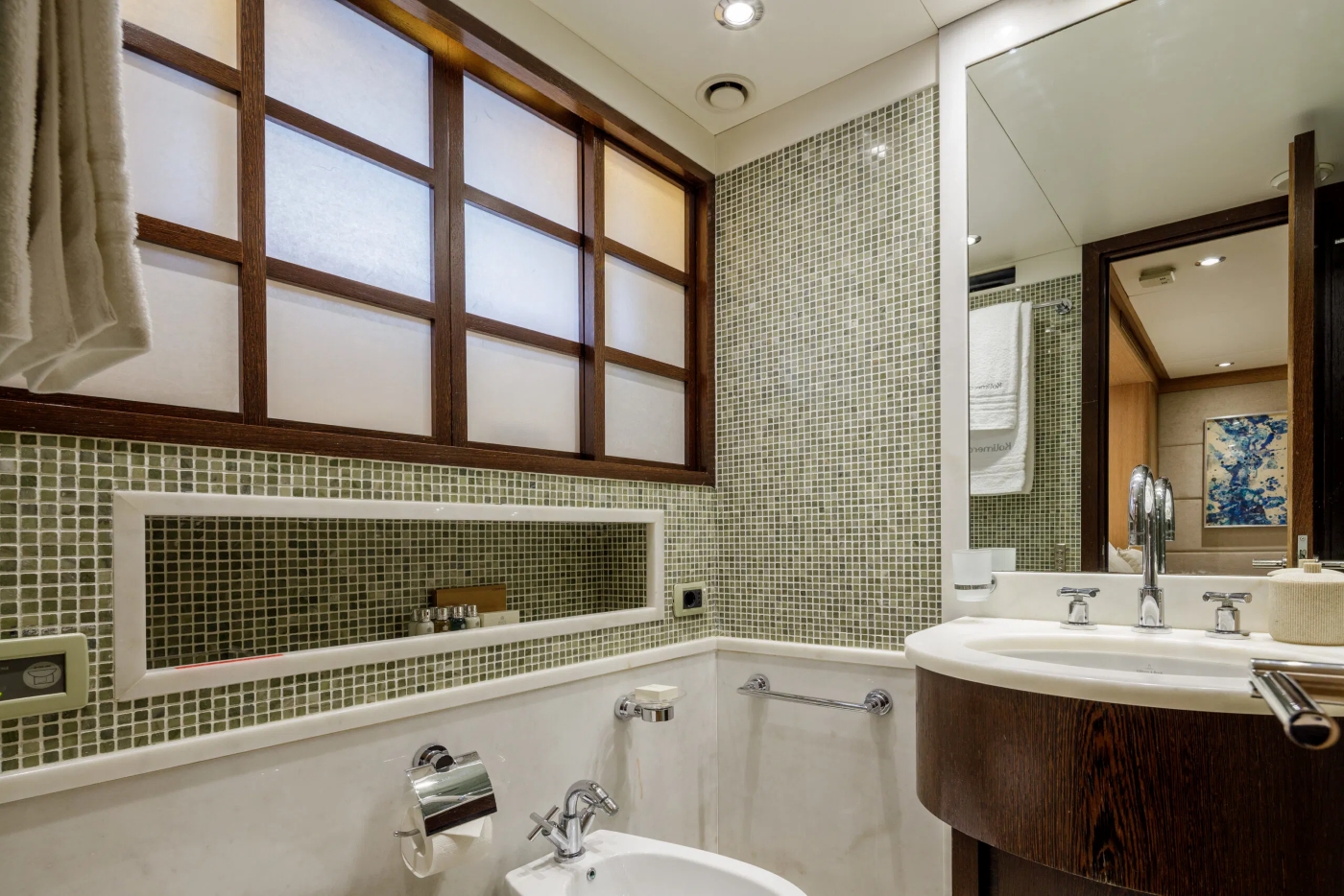 The main deck aft is a sheltered deck area with a flexible table which can be folded for drinks or extended to become a large dining table. The bow hosts a cosy foredeck lounge with bench seating and sun pad, while the swim platform extends when the transom door is open to create a beach club area.
