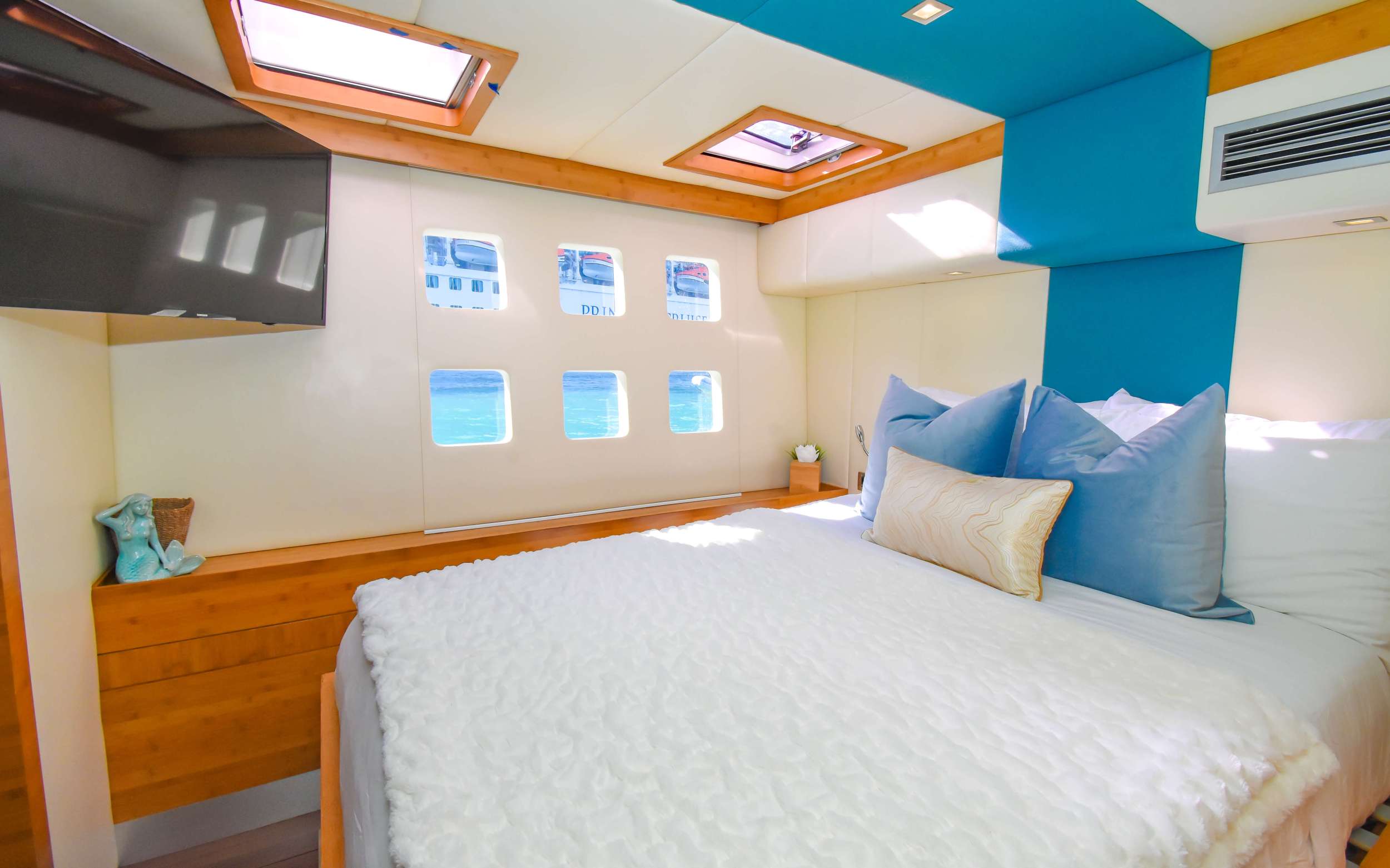 She boasts a striking exterior and light and welcoming interior with accommodation for up to eight guests in four spacious well-appointed ensuite cabins. A crew of two are on board throughout charter to ensure guests enjoy a fabulous experience.