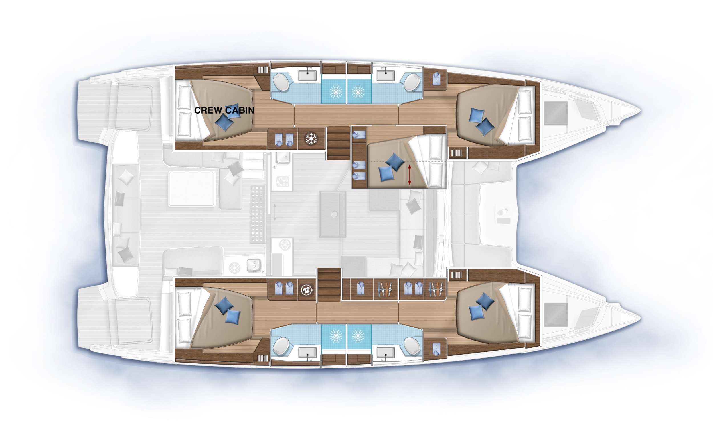The stylish interior present guests with a lovely communal main salon filled with light thanks to the surrounding windows. There is a galley space and flexible seating allowing for indoor dining and lounging.