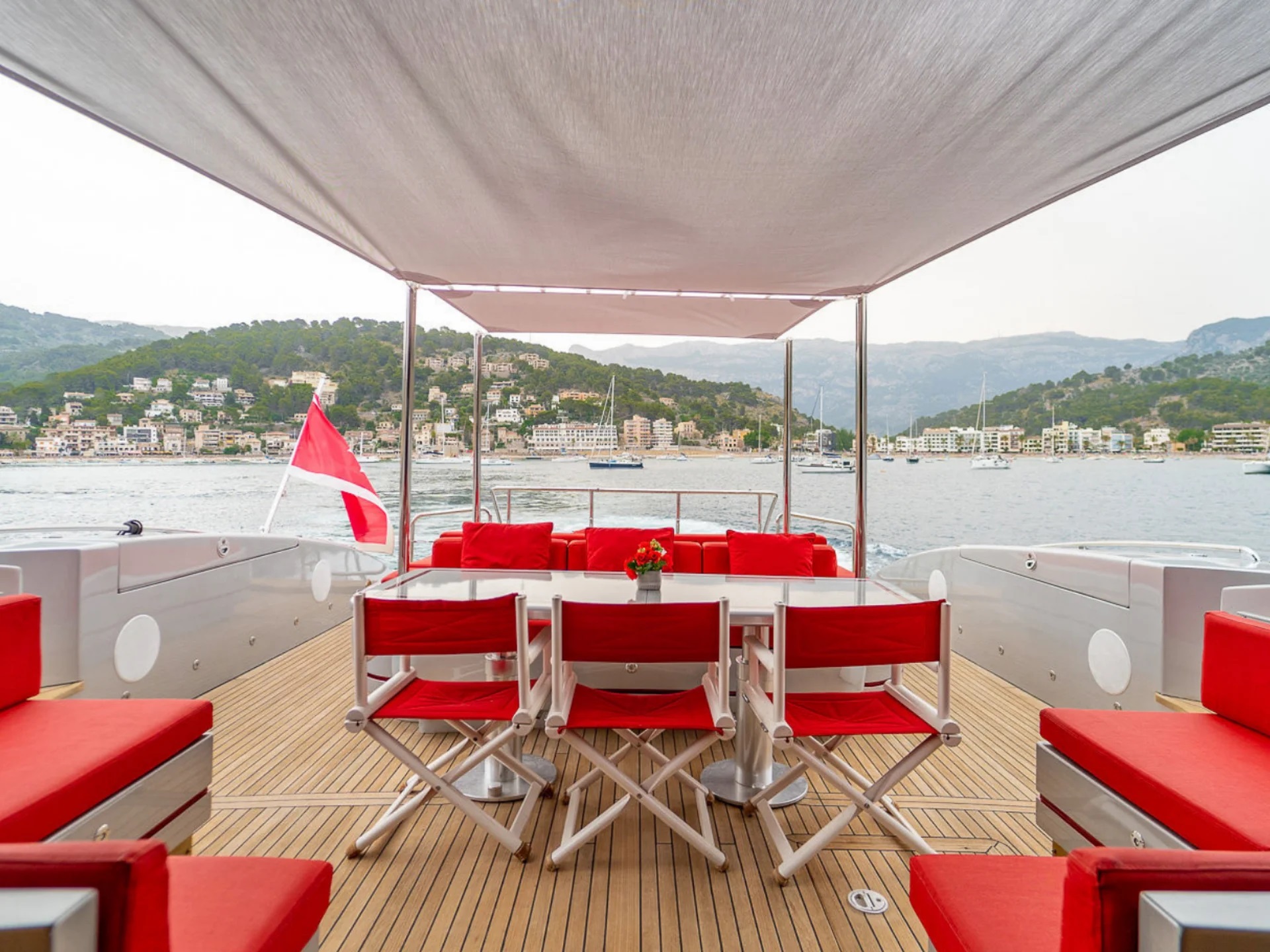 NOTABLE FEATURES OF LA DIGUE: ~Distinctive silver and red profile ~Red cushioned sunpads and benches ~Impressive main salon with loads of seating ~Collection of water toys ~Exercise equipment ~Air conditioning ...