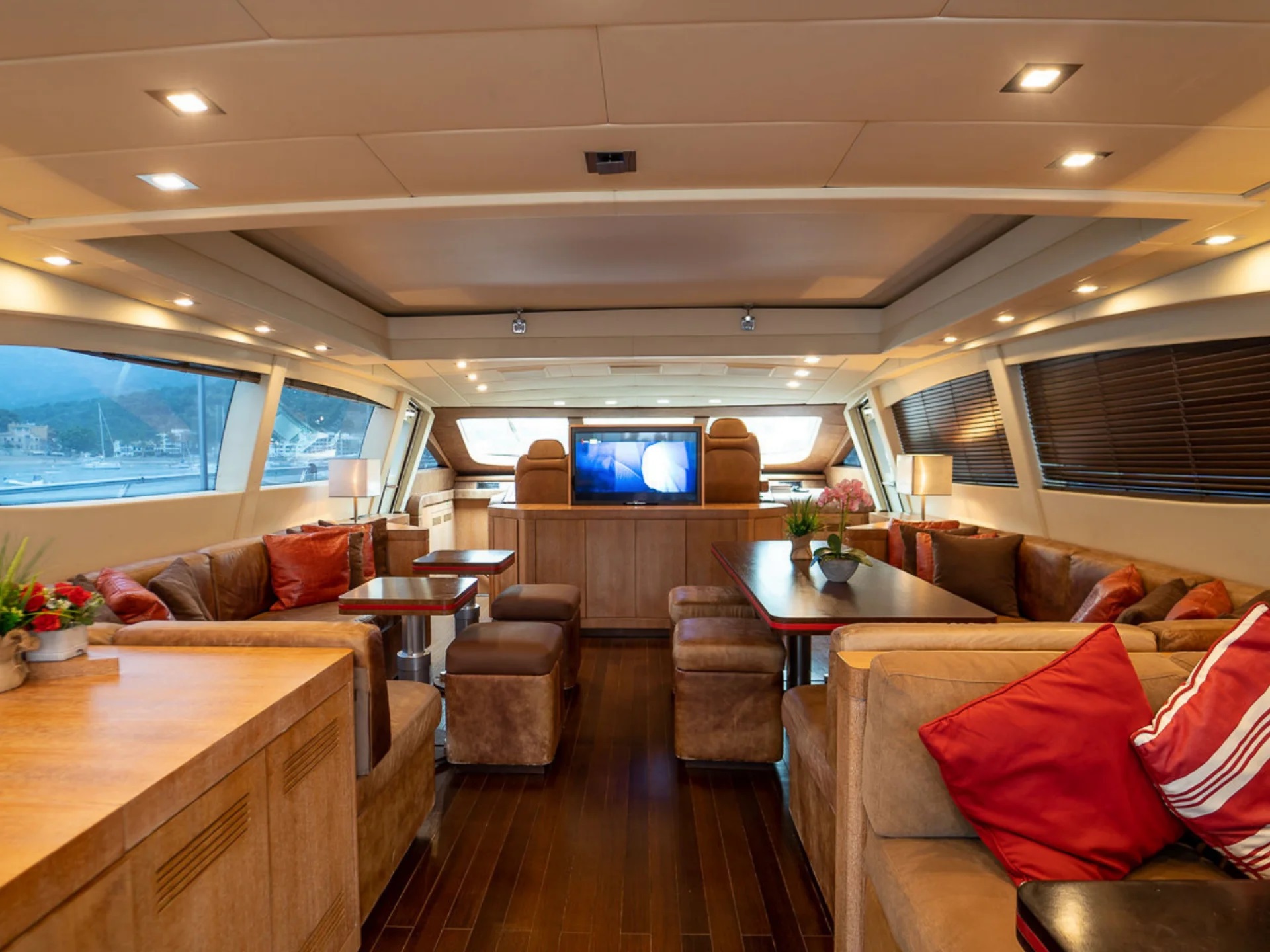 NOTABLE FEATURES OF LA DIGUE: ~Distinctive silver and red profile ~Red cushioned sunpads and benches ~Impressive main salon with loads of seating ~Collection of water toys ~Exercise equipment ~Air conditioning ...