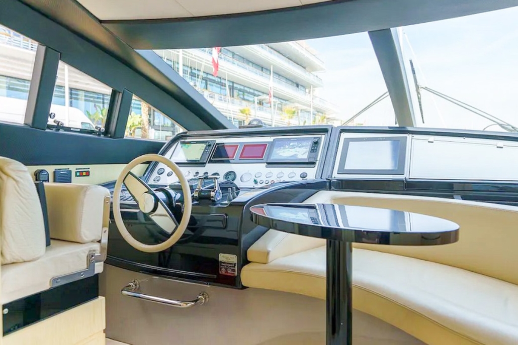 Sun lovers or romantic couples will enjoy the double sunpad on the foredeck, complete with fold-away Bimini cover, ideal for shade or privacy. Above the main deck, the flybridge offers a further alfresco dining, additional ...