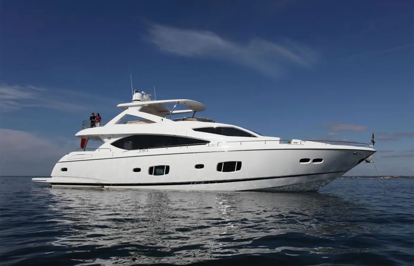 Motor yacht MOZZ II is a 2012 Sunseeker with a length of 26.88 m (88' 2"), plenty of sociable deck space and accommodation for up to ten guests in four cabins, thanks to the addition of pullman bunks. The charter will be managed throughout by a professional crew of four.