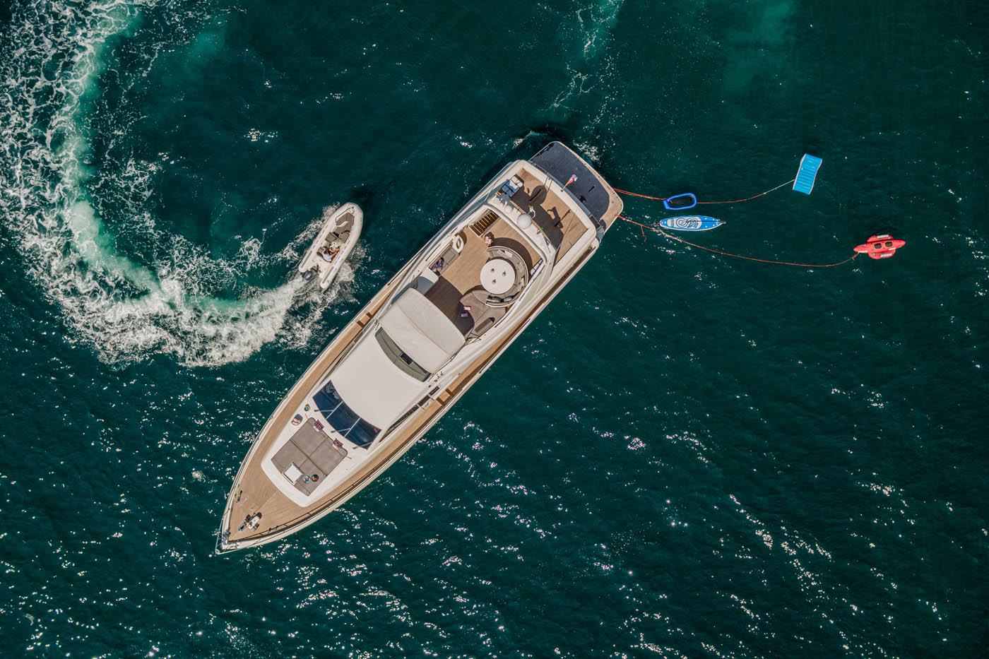 The yacht was built in 2004 by the Rizzardi shipyard and underwent a significant refit in 2021, personally overseen by the new owner. She can accommodate up to ten guests in four luxury ensuite cabins.