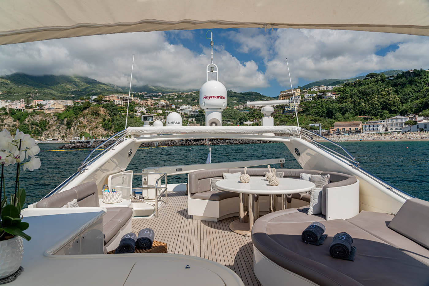 Having benefitted from a refit in 2021 her exteriors are in great condition with premium deck furnishings across the flybridge and main deck.