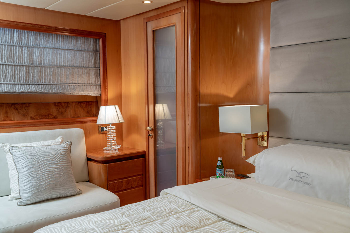 She can accommodate up to ten guests in four luxury ensuite cabins.