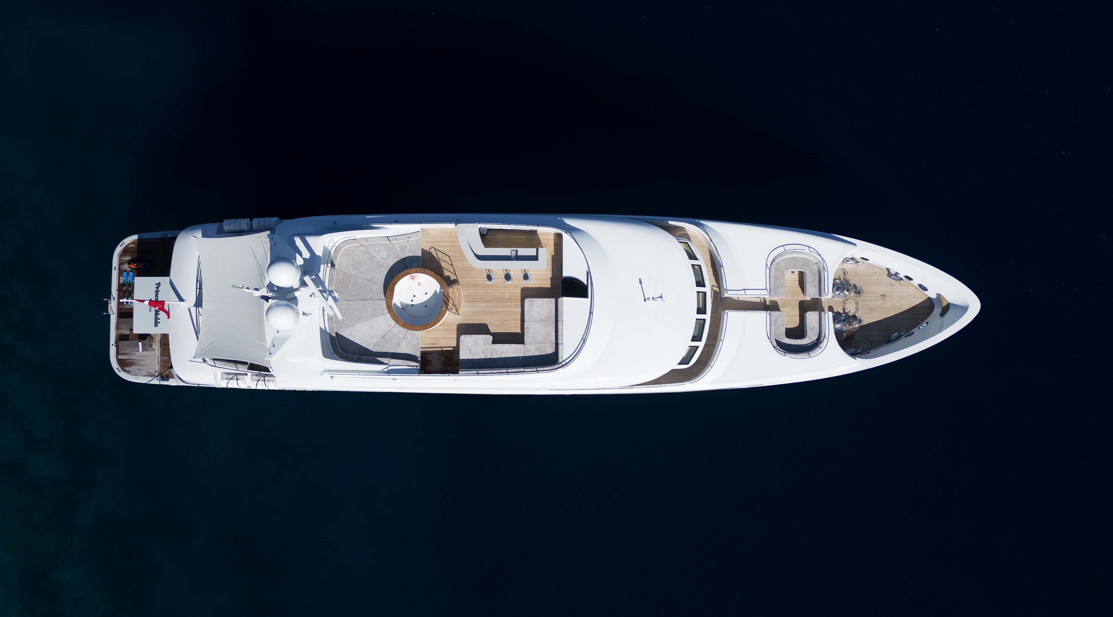 The upper deck aft creates a huge owners suite with private access to the outside deck terrace, with the wheelhouse forward.