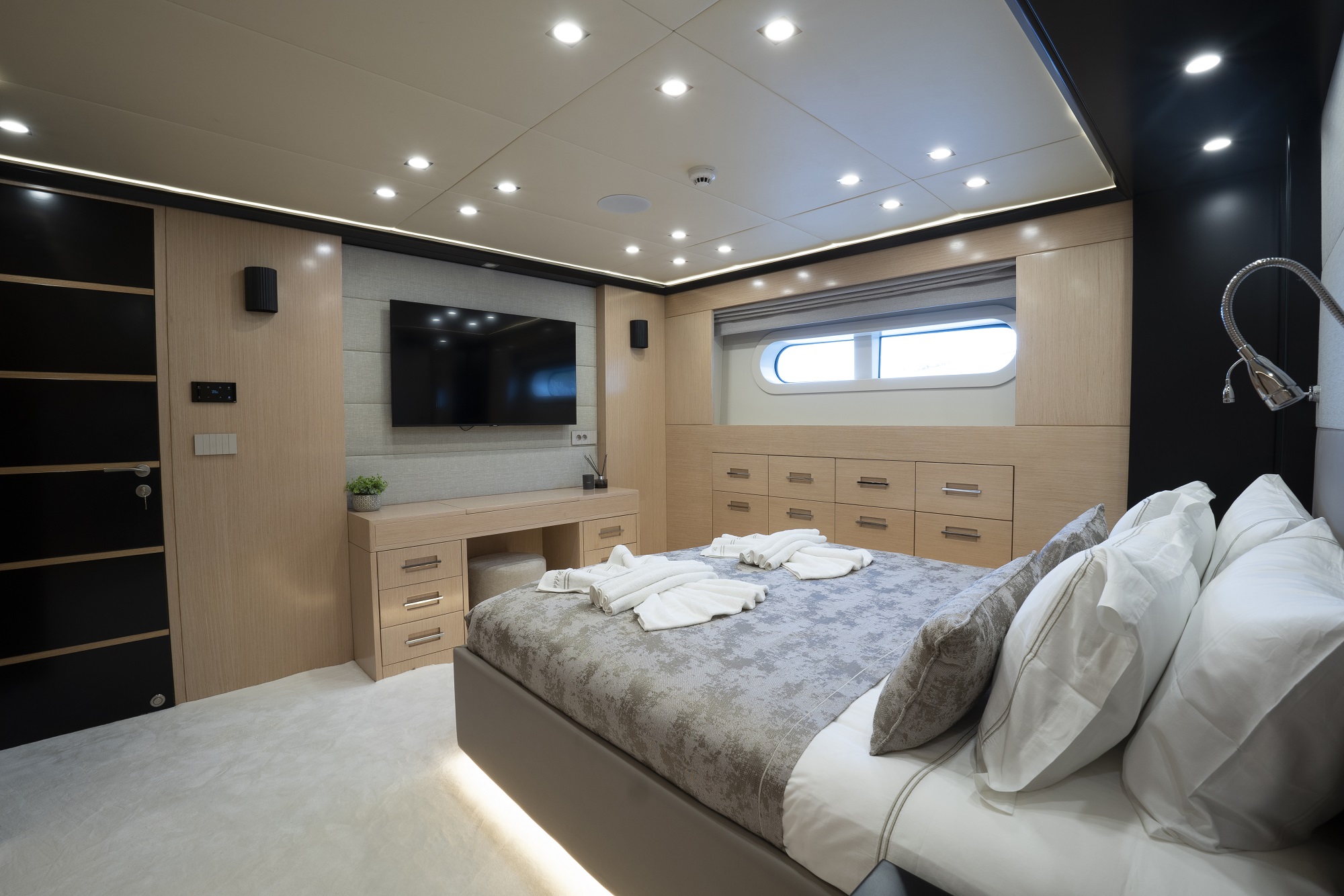 She is a superb motor yacht with all the premium features charter guests expect including two jacuzzis, beach club and accommodation for up to 12 guests in six suites.