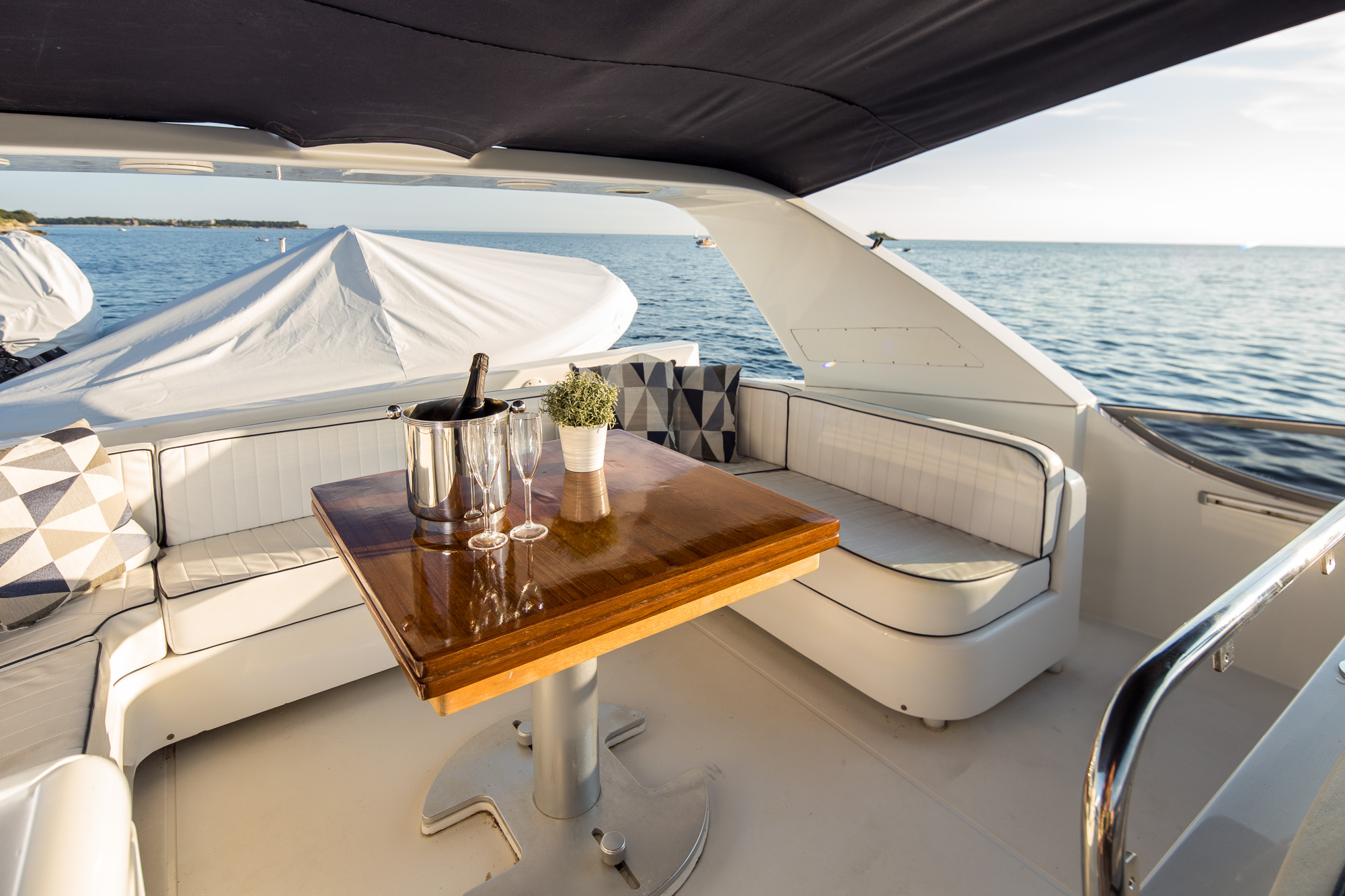 A flybridge sun deck, open main salon and four ensuite cabins make her the perfect family charter yacht and with two crew on board, guests will be well looked after.
