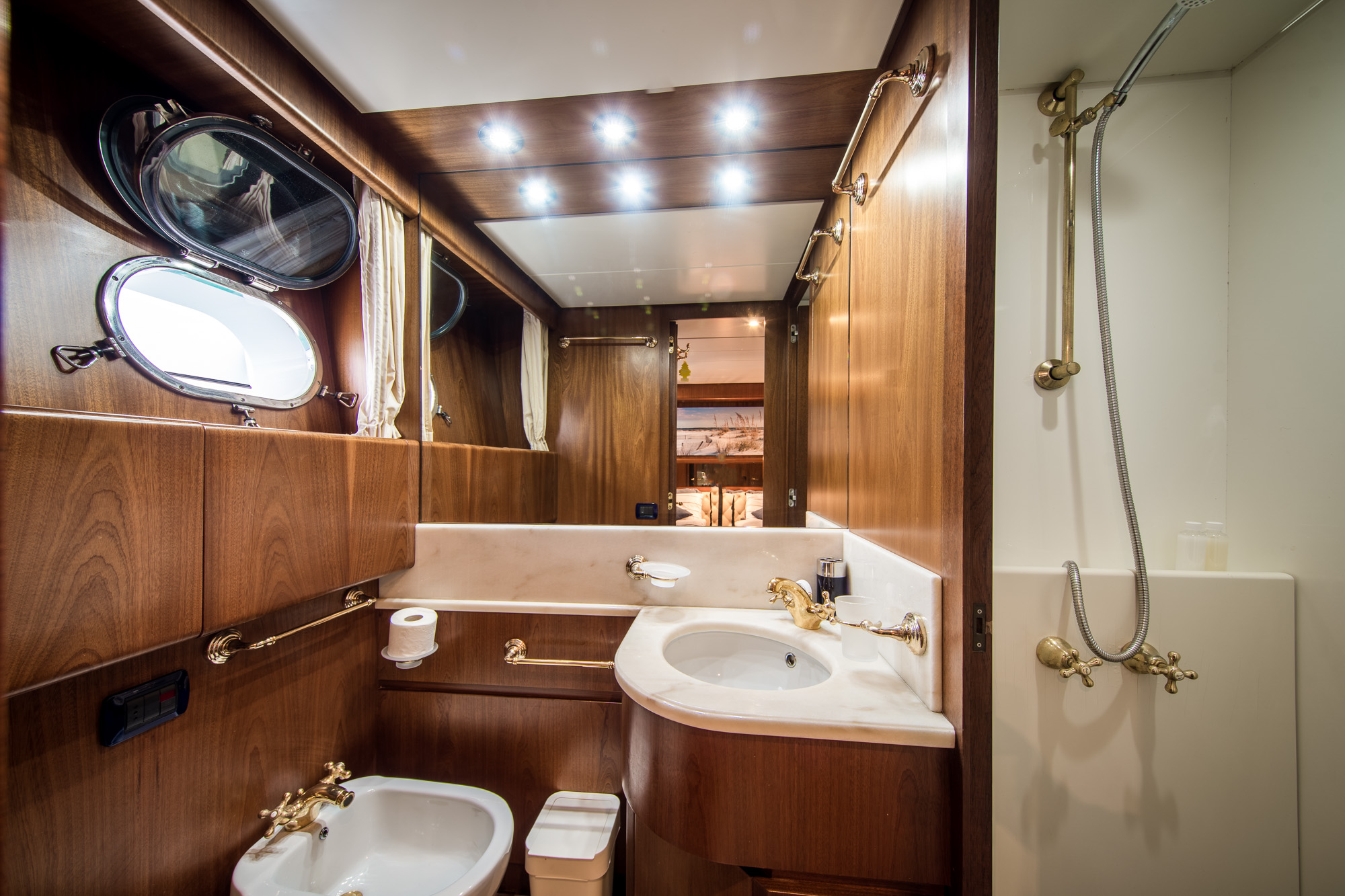 A flybridge sun deck, open main salon and four ensuite cabins make her the perfect family charter yacht and with two crew on board, guests will be well looked after.