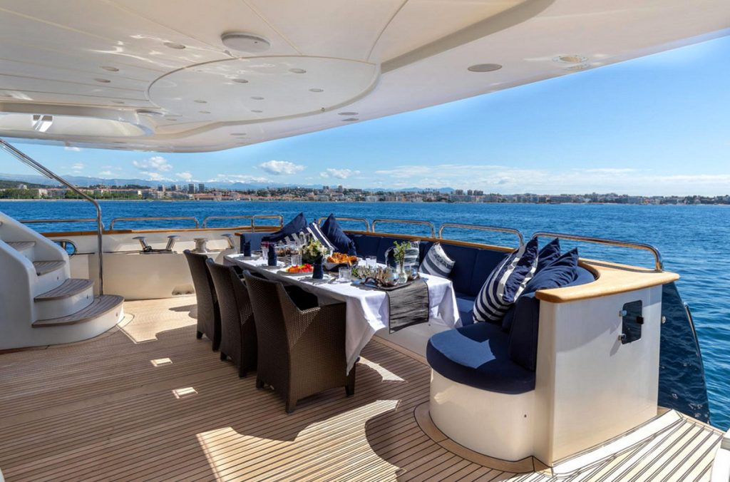 The three deck levels provide plenty of outdoor entertainment space for guests throughout their charter.