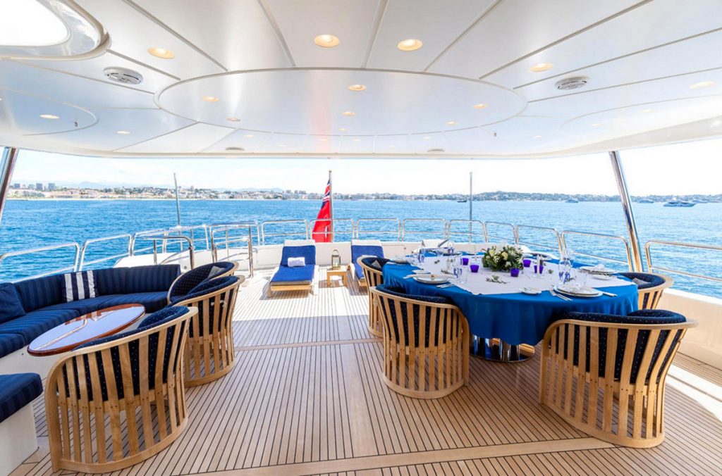 The three deck levels provide plenty of outdoor entertainment space for guests throughout their charter.