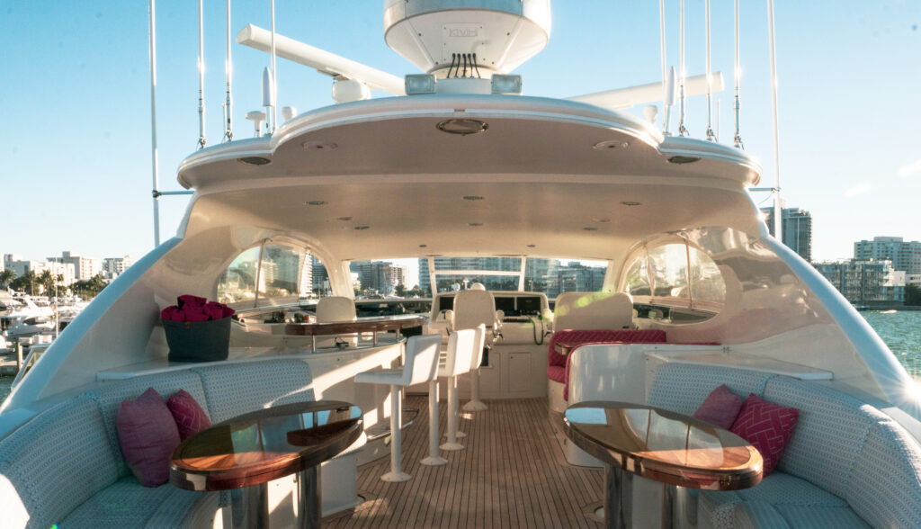 She presents with a lovely sweeping profile, elegant deck furnishings and a chic interior. Up to nine guests can be accommodated in four staterooms and a crew of four are on board throughout.