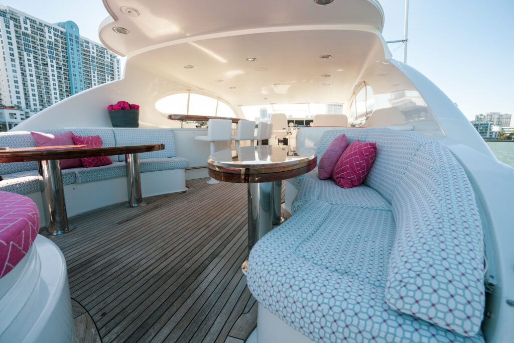 She presents with a lovely sweeping profile, elegant deck furnishings and a chic interior. Up to nine guests can be accommodated in four staterooms and a crew of four are on board throughout.