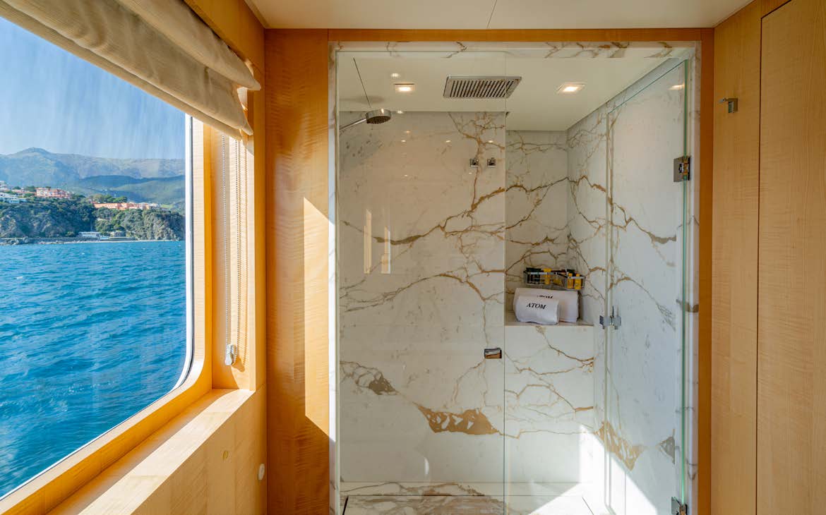 She has a simple and contemporary interior design, featuring clean lines by her interior designer Michael Kirschstein and her naval architecture was done by Bray Yacht. She is able to accommodate up to 9 charter guests in 4 cabins.