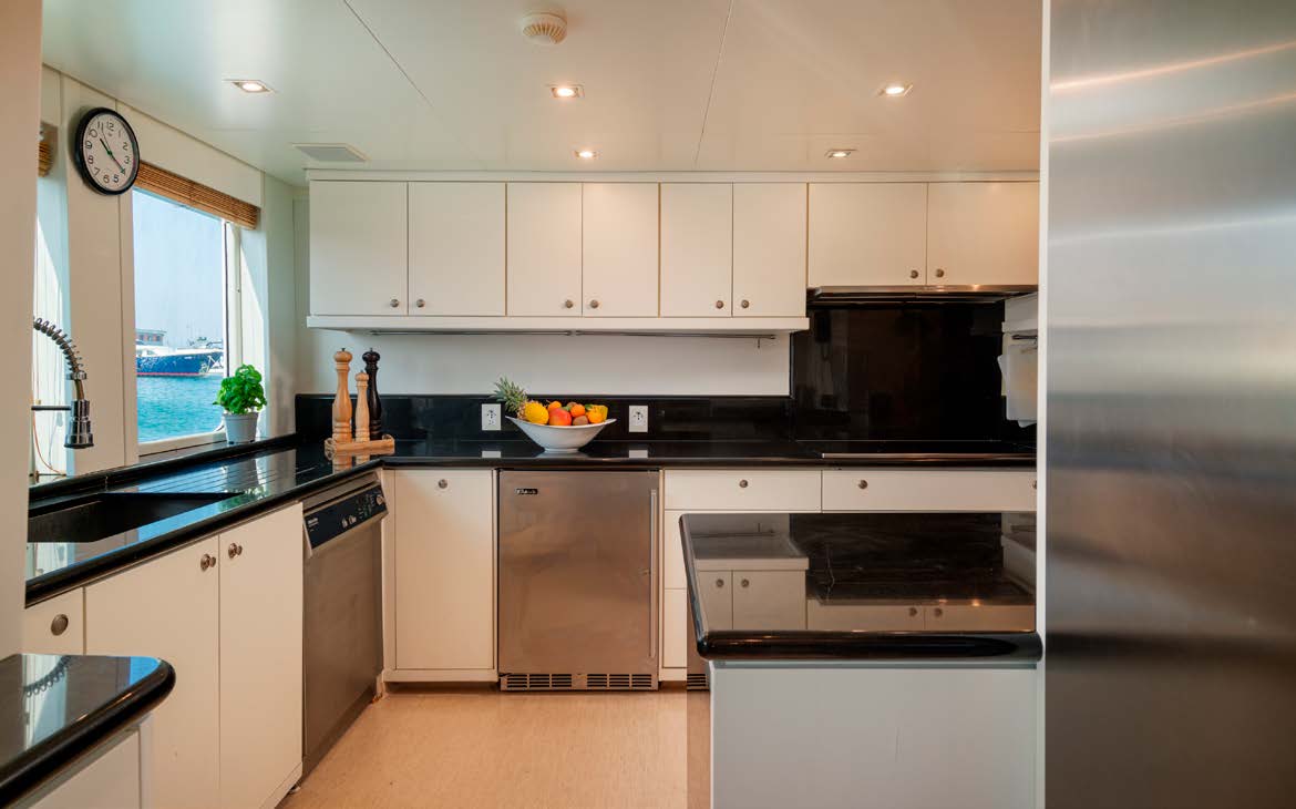 There is also an office with a comfortable day bed and private desk on the upper deck which is located between the wheelhouse and sky lounge. This space can also be used for yoga, meditation or light exercise.