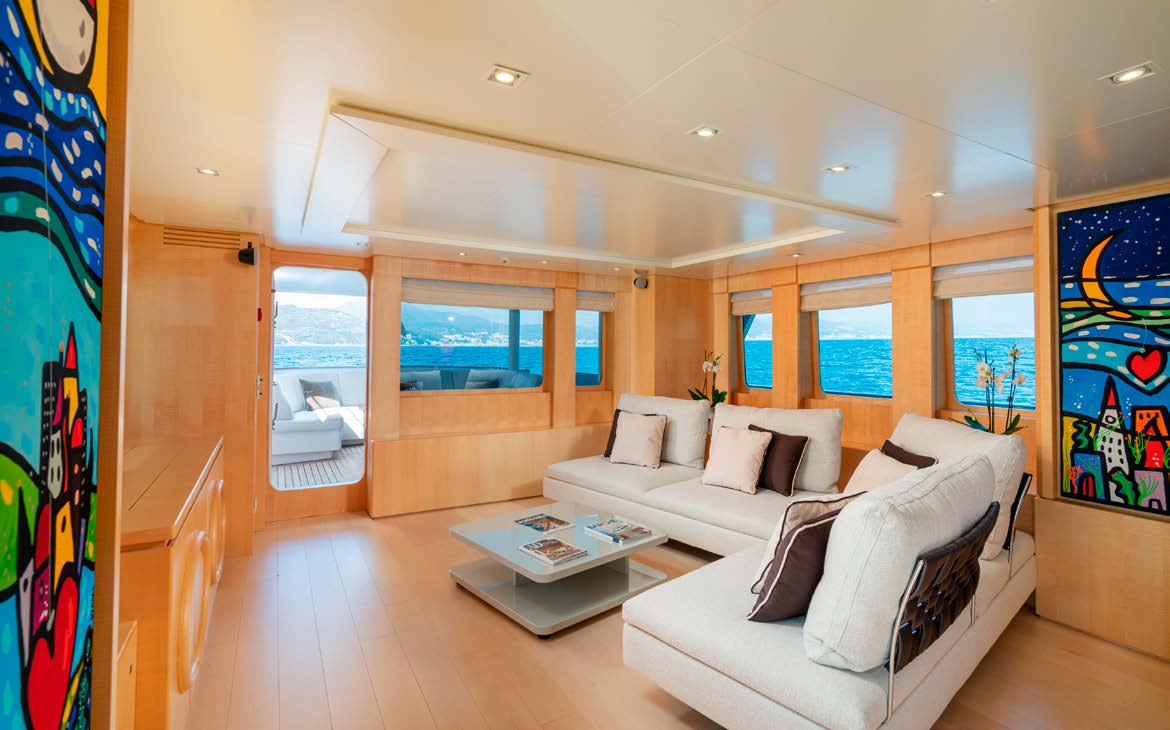 The outside helm station is forward of this area. When the tender and toys are removed from the boat deck aft of the sky lounge, there is an extra area for guests to enjoy the spectacular views. Motor yacht SUDAMI also offers a large swim platform for access to the water and water sports toys.