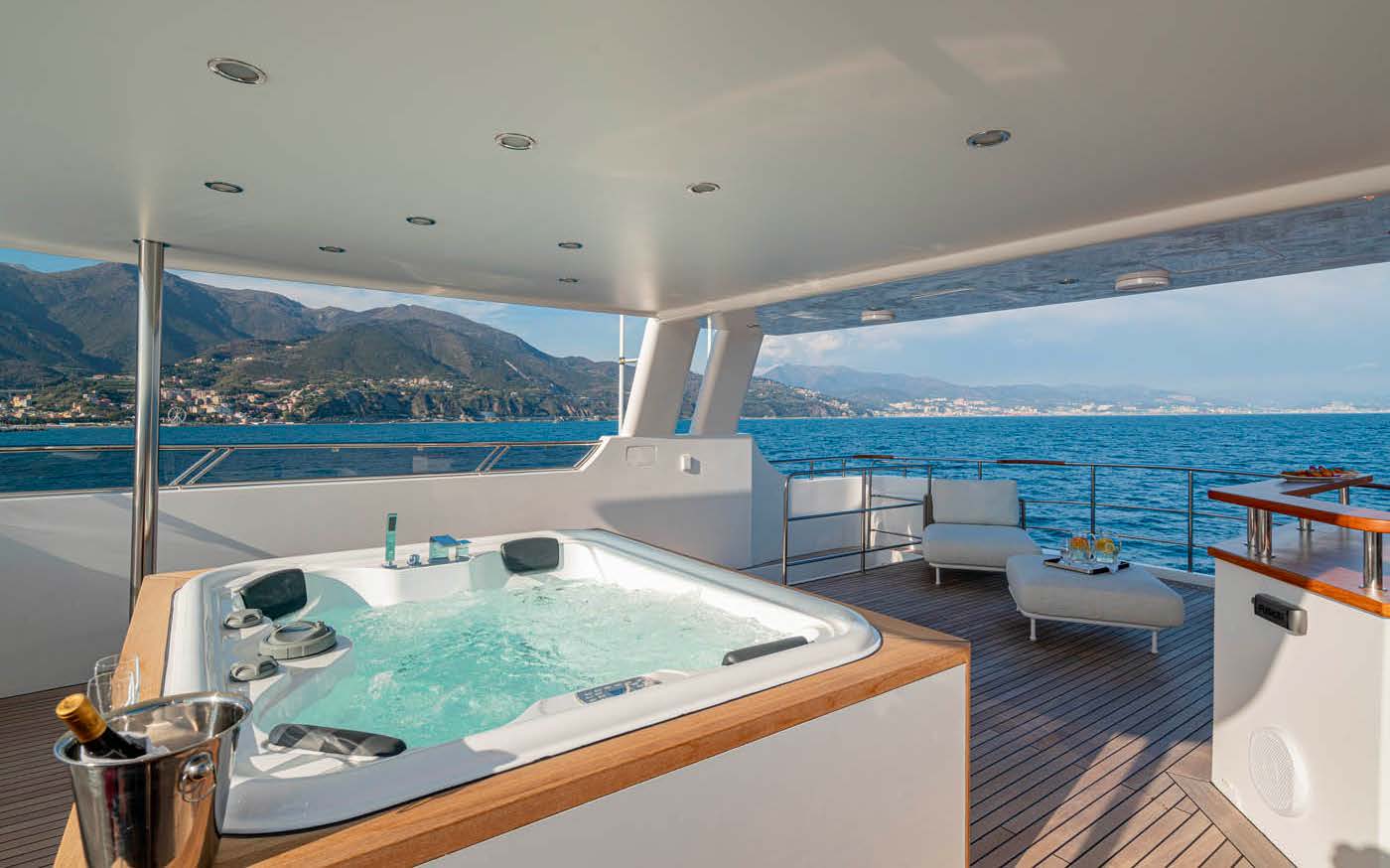 ATOM'S NOTABLE FEATURES: Spa pool ~ Great selection of water toys ~ Lots of space for relaxation and entertainment ~ Private office with day bed ~ Nicely equipped Sky lounge and sun deck.